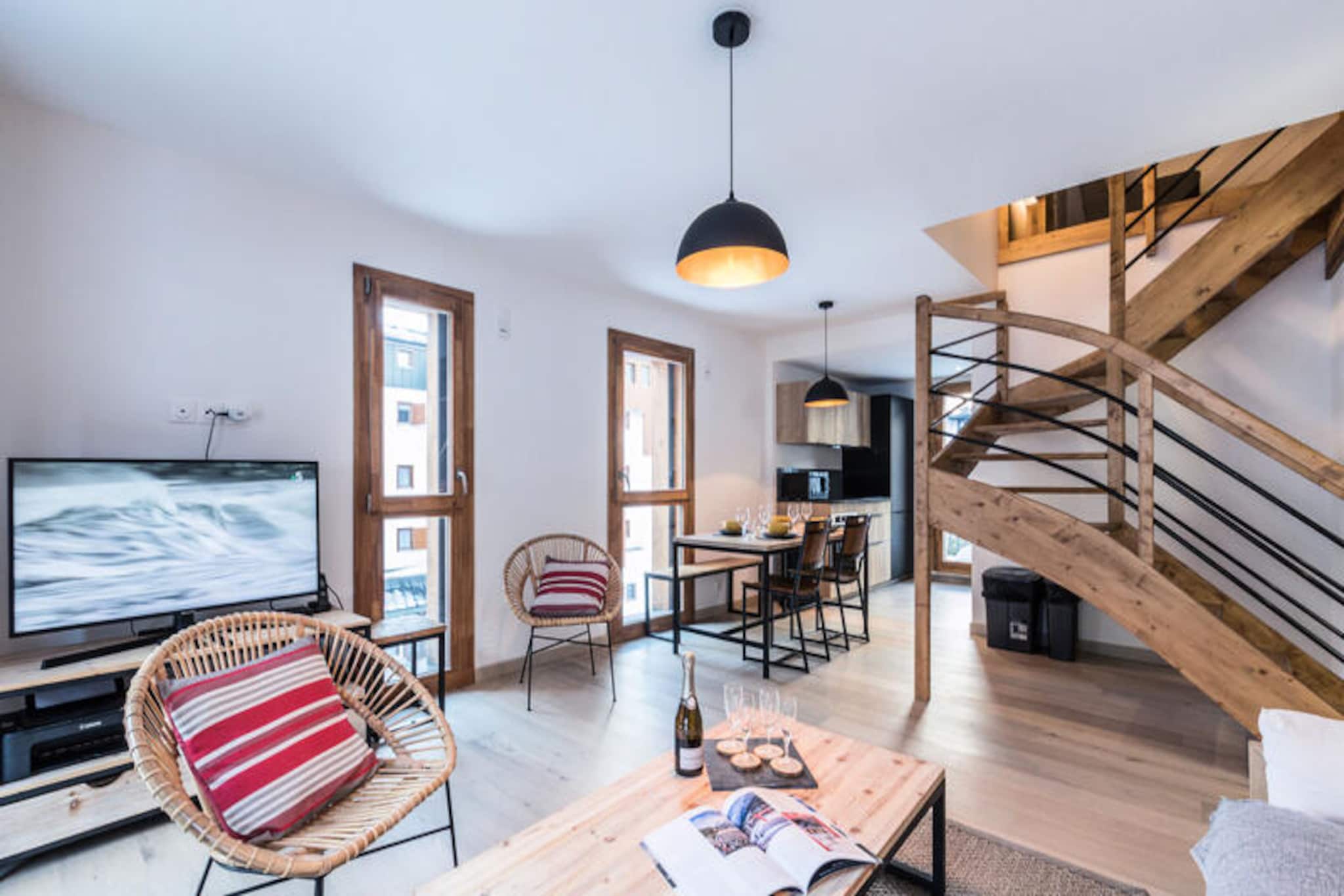 In the heart of Chamonix's charming Lyret district, this elegant 3-star duplex apartment offers a serene retreat with stunning mountain views. Perfectly situated in a quiet yet central location, the residence combines modern comfort with alpine charm, making it an ideal base for exploring the beauty of the Mont Blanc region. Whether you're here for thrilling outdoor adventures or a peaceful escape, this property promises an unforgettable stay. \n\nSpanning 74m², the apartment comfortably accommodates up to six guests across two levels. The lower level features a cozy TV lounge and dining area that opens onto a balcony with breathtaking views of the Brévent Mountains. The fully equipped kitchen is a haven for culinary enthusiasts, complete with an induction hob, oven, microwave, and specialty appliances for raclette, crepes, and fondue. An en-suite double bedroom with balcony access ensures privacy and relaxation, while the upper level offers a flexible sleeping arrangement with a twin bedroom and a bunk room, perfect for families or groups. Modern amenities like Wi-Fi, a washing machine, dryer, and private underground parking add to the convenience. \n\nJust steps from the apartment, you'll find Chamonix's vibrant center with its array of shops, restaurants, and cafes. The nearby Helbronner bus stop and train station provide easy access to the region's top attractions, including the Aiguille du Midi cable car and the Mer de Glace glacier. After a day of skiing, hiking, or sightseeing, return to the comfort of your alpine retreat and unwind on the balcony as the sun sets over the peaks. \n\nChoose this exceptional property for its unbeatable location, modern amenities, and the perfect blend of tranquility and adventure in the heart of the French Alps.