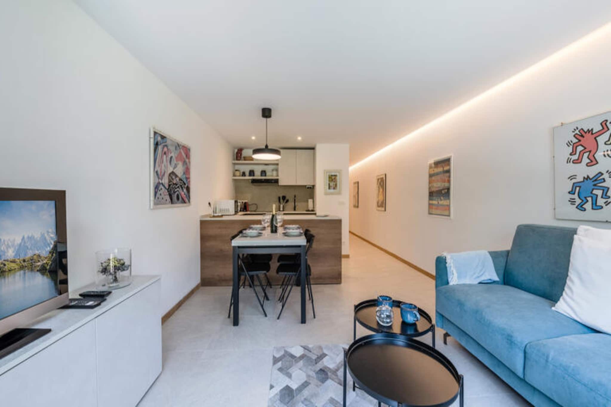 In the heart of the majestic Chamonix Valley, this charming ground-floor apartment in Les Praz offers a tranquil retreat for couples or small families. With its private garden and terrace, you’ll wake up to awe-inspiring views of Les Drus and the Aiguille Verte, a perfect backdrop for your alpine escape. Whether you’re sipping your morning coffee or enjoying an evening under the stars, the serene ambiance of this location will leave you enchanted. \n\nThe apartment spans 38 m² and is thoughtfully designed to provide both comfort and functionality. The cozy double bedroom ensures restful nights, while the bright living room, complete with a sofa bed and flat-screen TV, invites relaxation after a day of adventure. The fully equipped kitchen, featuring modern appliances like an induction hob, oven, and Nespresso machine, makes it easy to prepare meals to enjoy indoors or on the terrace. Additional conveniences such as a washing machine, heated towel rail, and Wi-Fi enhance your stay, ensuring a seamless experience.\n\nSituated just 170 meters from bus and train stops, the property offers excellent connectivity to Chamonix’s renowned attractions. Explore world-class ski slopes, hiking trails, and the vibrant town center, all within easy reach. After a day of exploring, store your gear in the private ski storage and unwind in the comfort of your alpine haven. \n\nWith its blend of modern amenities, breathtaking scenery, and prime location, this apartment is an ideal choice for those seeking a memorable getaway in the French Alps. Let the beauty of Chamonix inspire your next adventure.