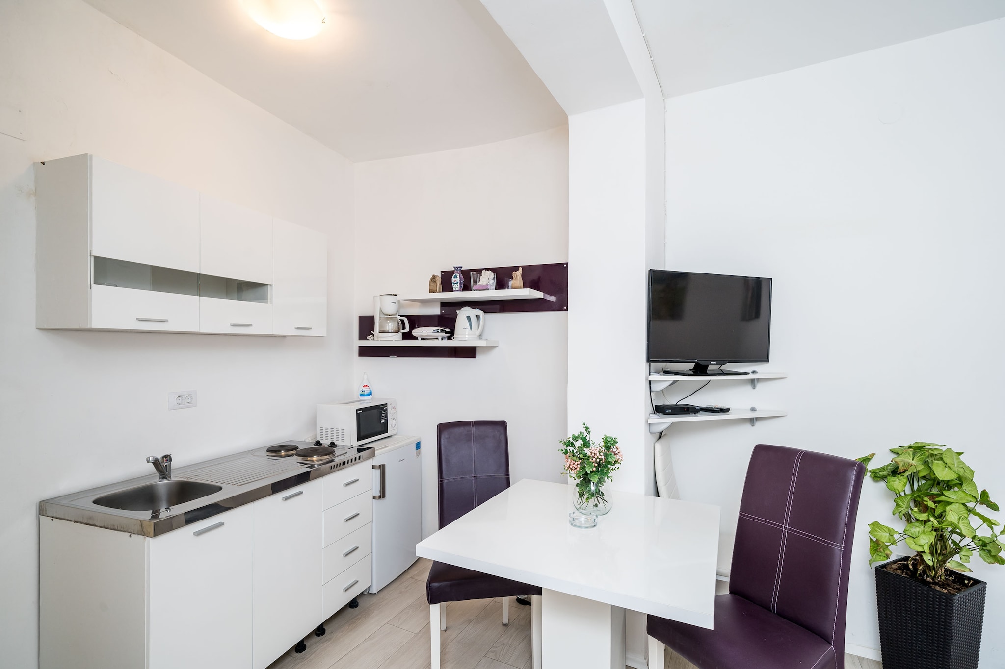 This modern Studio Apartment comfortably fits two people and it features air-conditioning, WiFi and flat-screen TV. Kitchen is well equipped with a stove, refrigerator, toaster, water kettle and coffee machine. Bathroom includes a bathtub.
