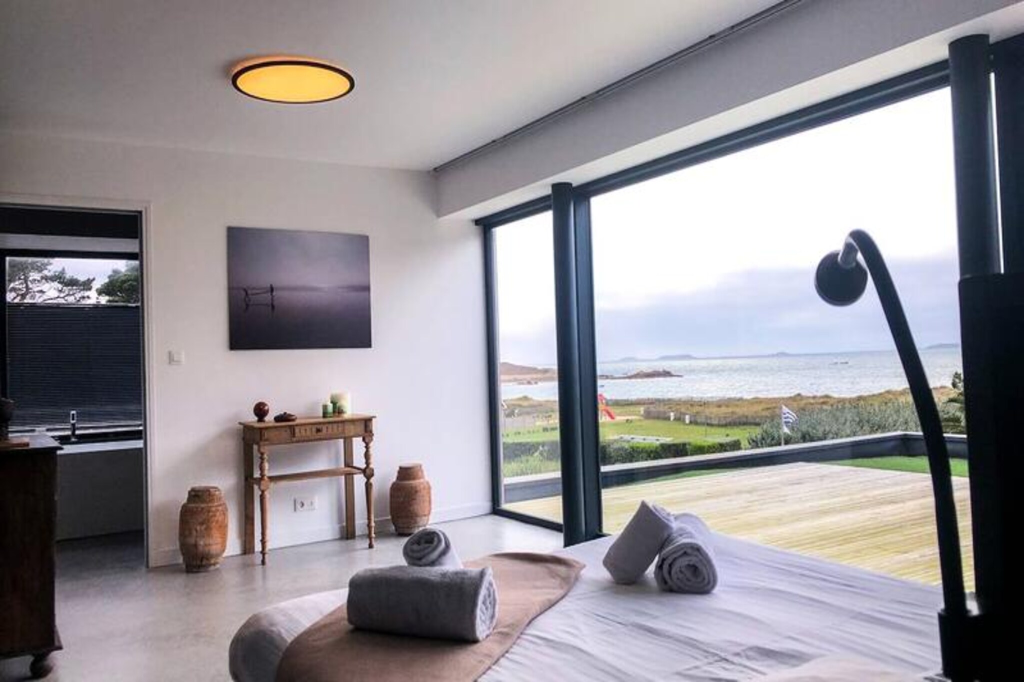 Omnipresent, the panoramic sea view captivates the eye throughout the day and amazes you in the evening at sunset. Thanks to the omnipresence of its bay windows, you always have the impression of being in direct contact with the sea.