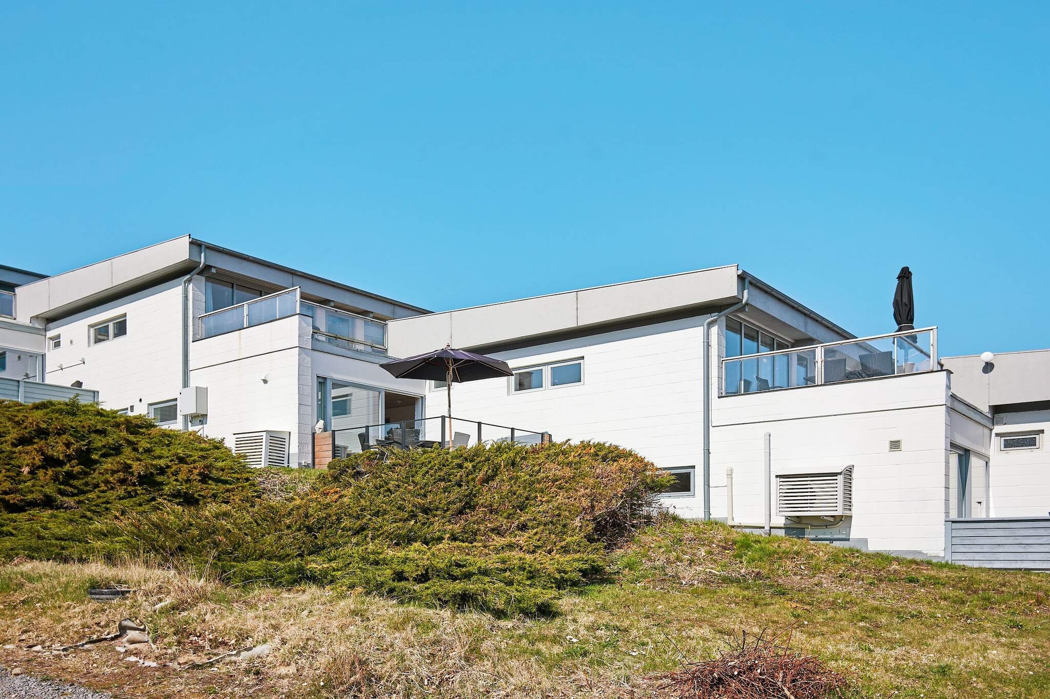 Kitchen(cooker(electric), hood, coffee machine, microwave, dishwasher, fridge), Living/bed room(TV(german television channels, danish TV channels (DR1 and TV2)), stereo unit), bedroom(double bed), bedroom(3x single bed), bathroom(washbasin, shower, toilet), heating(electric), terrace, air to air heatpump