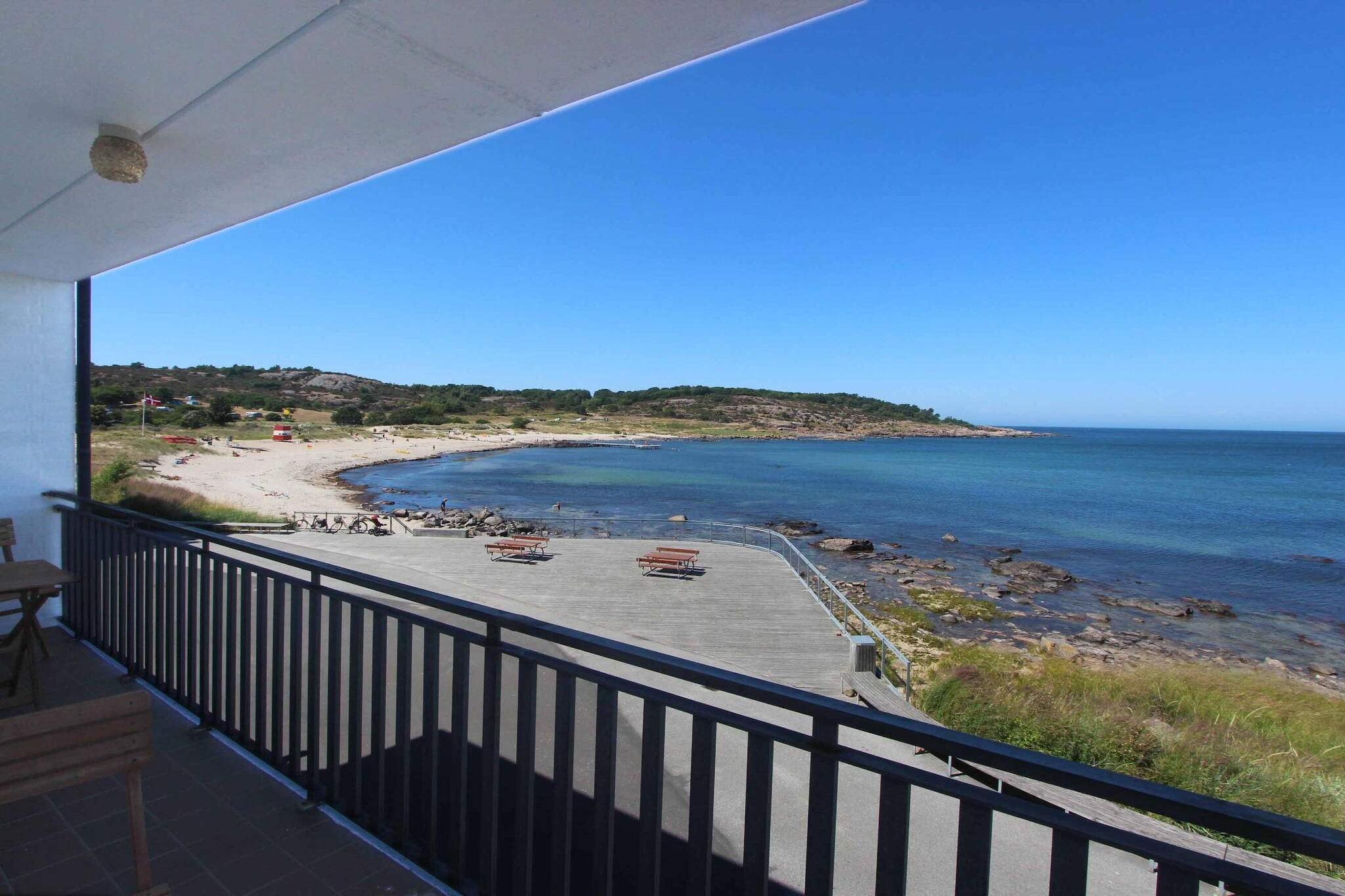 Denne indbydende ferielejlighed ved Sandkås med den flotteste havudsigt er perfekt til parret, der vil bo behageligt på den nordlige del af Bornholm. Lejligheden er indrettet med en lille entre samt opholds- og spisestue med åbent køkken. Her er mulighed for opredning på dobbelt sovesofa (150 cm), så I kan tage børnene med. Der er gulvvarme samt vaskemaskine og tørretumbler i badeværelset. Med udgang fra opholds- og spisestuen kommer I ud på den store terrasse, der med den smukkeste havudsigt vil være et yndet sted at opholde sig. Terrassen er udstyret med havemøbler, grill, markise og så selvfølgelig havudsigten. Bare ca. 100 meter fra lejligheden er der adgang til dejlig badestrand, men I kan også vælge klipperne som udgangspunkt for en dukkert i Østersøen. Lejligheden er en del af Søterrasserne og består af en række ferielejligheder. Denne lejlighed ligger tættest på vandet og har en formidabel udsigt. Sandkaas byder på både minigolf, kiosk, gode restauranter og der er masser af hygge og afslappet feriestemning. Udlejes ikke til ungdomsgrupper.