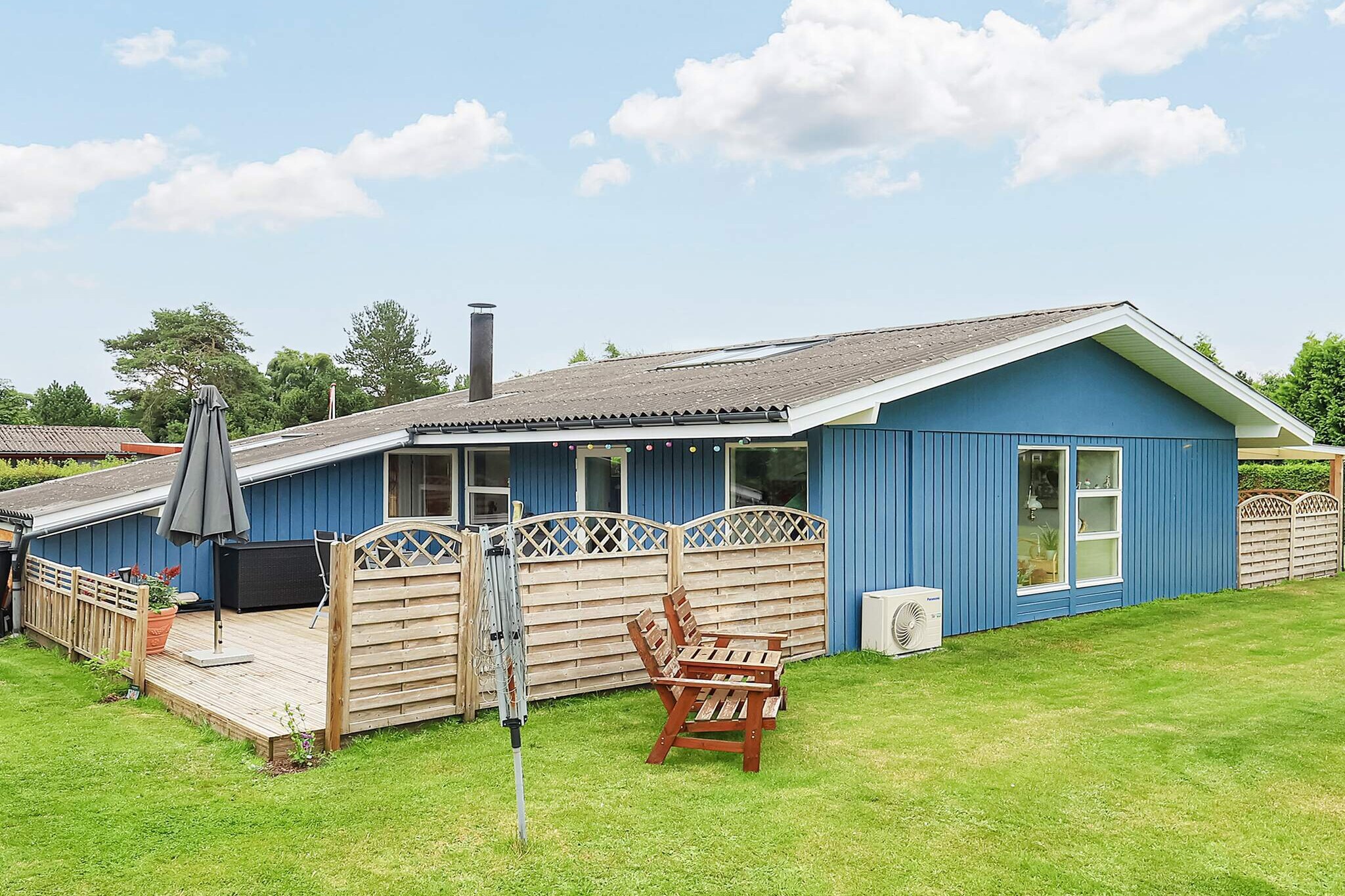 The well-maintained summer house 'Joy' is the ideal holiday home for couples and families with children, and the versatility of the house makes it easy to create the setting for the holiday you dream of in both larger and smaller groups. Here you can swim on the nearby fantastic beach or relax at home in the hot tub and sauna, while children and young people can use the many games and play facilities inside and out. You can sunbathe, read or grill in peace and quiet on the large terrace, and inside you can play board games etc., cozy up by the wood-burning stove with good films or play Playstation in the living room and on the loft. The house contains: Bright and cozy living room with a wood-burning stove located centrally with the rooms around it. On a rainy day, you can enjoy one of the house's many board games, play on PlayStation4, or watch a few of the approximately 100 DVDs on the living room's 55" smart TV. Chromecast and Google Home are installed. There is also a high chair and a baby chair for mounting on the dining table. Three bedrooms, one with raised beds and one with TV/DVD. Two of the rooms have direct access to the terrace, and one has a folding cot. All rooms are equipped with mosquito nets on the door and around the bed. In the loft there are 2x80 cm good spring mattresses, TV/DVD, lots of children's films and a PlayStation2. Fully equipped kitchen with everything you could want for preparing meals, and in addition to stove/oven, fridge/freezer, extractor hood and dishwasher, you will find: air fryer, microwave, coffee machines, coffee grinder, apple slice maker, waffle iron, hand mixer and egg cooker. Two bathrooms, one of which has a spa and sauna, as well as a washing machine and dryer. There is a hairdryer in both bathrooms. On the terrace there is a fully screened lounge area with sofa, table, sun loungers and parasol. By the north-facing room there is a small café table for the last evening light, and next to the other room there is an 8-person table ready for the first meal of the day in the morning sun. On the covered part of the terrace there are tables for 8 people, an electric grill and a gas grill, where you are responsible for refilling the empty gas bottle yourself. A terrace heater has been installed. In the garden there is a hammock for the older ones, a playhouse/pirate ship for the little ones, sandpit, slide/swing, garden croquet, Viking games, ladder golf, garden rackets, etc. etc. The cottage is surrounded by three empty plots of land and this, as well as the area's many trees, creates a quiet and peaceful atmosphere, perfect for total relaxation. This with great chances of enjoying deer, pheasants, squirrels or hares up close. Thorough guidance has been prepared in Danish and English with answers and solutions to any questions that may arise as well as suggestions for activities during the stay. The cottage is rented exclusively for holiday stays and not to youth or crafts groups.A refundable deposit might be charged closer to your check-in date. The security deposit ensures a smooth stay and covers any additional services or consumption charges.This deposit covers utilities consumed during your stay and any additional services that may be taken.The final amount will be adjusted based on actual meter readings, actual usage of extra services, and any remaining balance will be refunded within 21 days after checkout.This deposit simply acts as a prepayment for charges that  you would anyways pay for, ensuring a seamless stay and check-out experience.