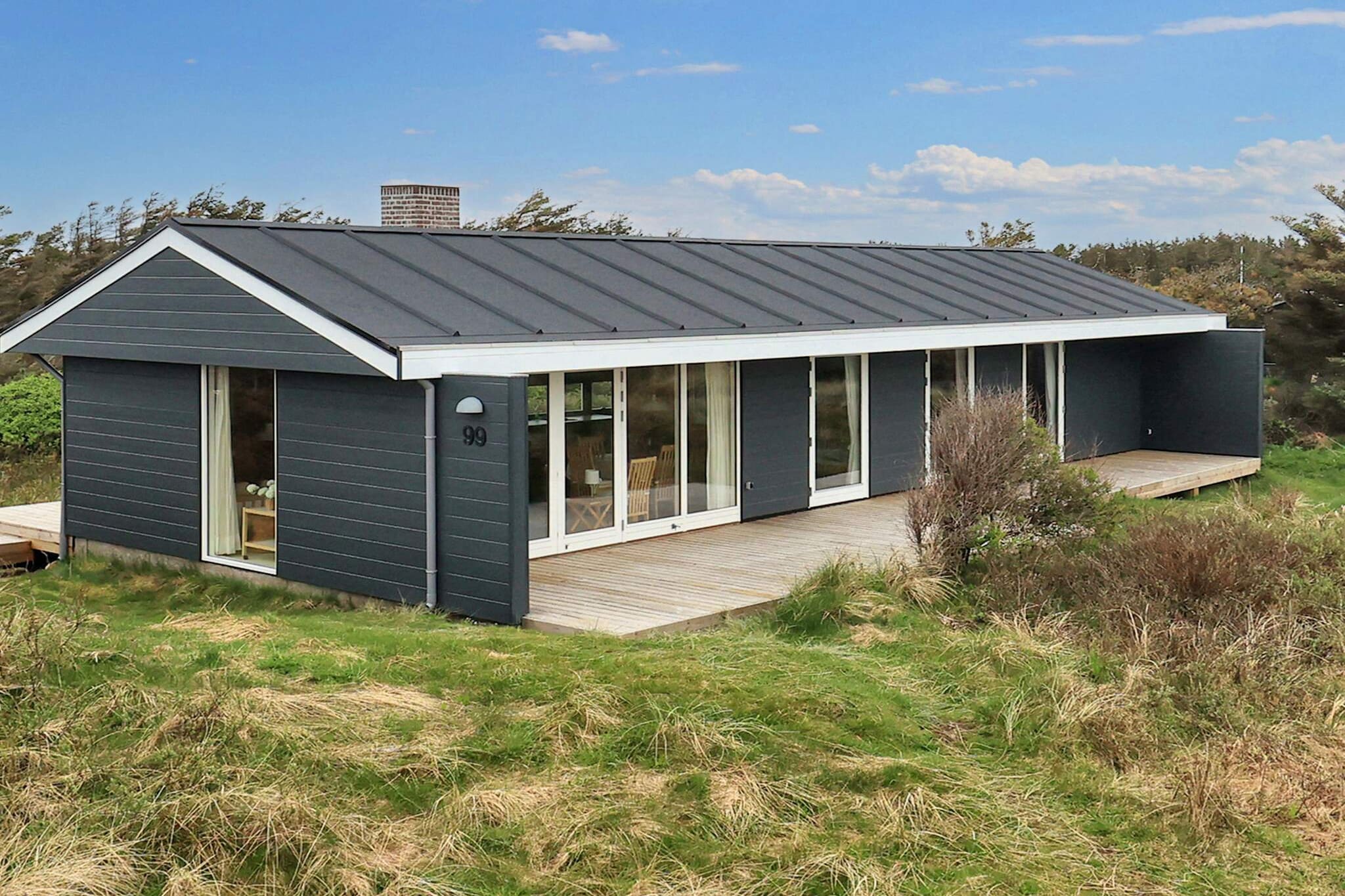 In the popular Løkken, close to both the beach and town, you will find this holiday cottage with whirlpool and sauna, which was built in the spring of 2012. A house for environmentally conscious families as it is equipped with energy-saving measures such as geothermal heating and extra insulation, which reduces power consumption considerably and makes the house extremely co2-friendly. The house has an open concept living room/kitchen, activity room, four bedrooms with double beds and a mezzanine. Bathroom with whirlpool and sauna, guest toilet with shower. There is underfloor heating throughout. The layout with two bedrooms and bath in each department makes the house ideal for two families sharing. The living room is divided into a sitting area with sofa and TV and a kitchen/dining area, both with plenty of space. The activity room has a TV, pool table and table football. For the youngest guests there are swings and sandpit, cot and high chair. The large windows that in many places go from ceiling to floor, provide a fantastic natural light throughout the day. The furnishings are tasteful, in modern Danish style and highest quality. Both open and covered terrace. The plot is an open plot with excellent opportunities for sunbathing, playing games with the kids or having fun around the grill. No letting to groups cf. § 3.3 in DC terms and conditions.A refundable deposit might be charged closer to your check-in date. The security deposit ensures a smooth stay and covers any additional services or consumption charges.This deposit covers utilities consumed during your stay and any additional services that may be taken.The final amount will be adjusted based on actual meter readings, actual usage of extra services, and any remaining balance will be refunded within 21 days after checkout.This deposit simply acts as a prepayment for charges that you would anyways pay for, ensuring a seamless stay and check-out experience.