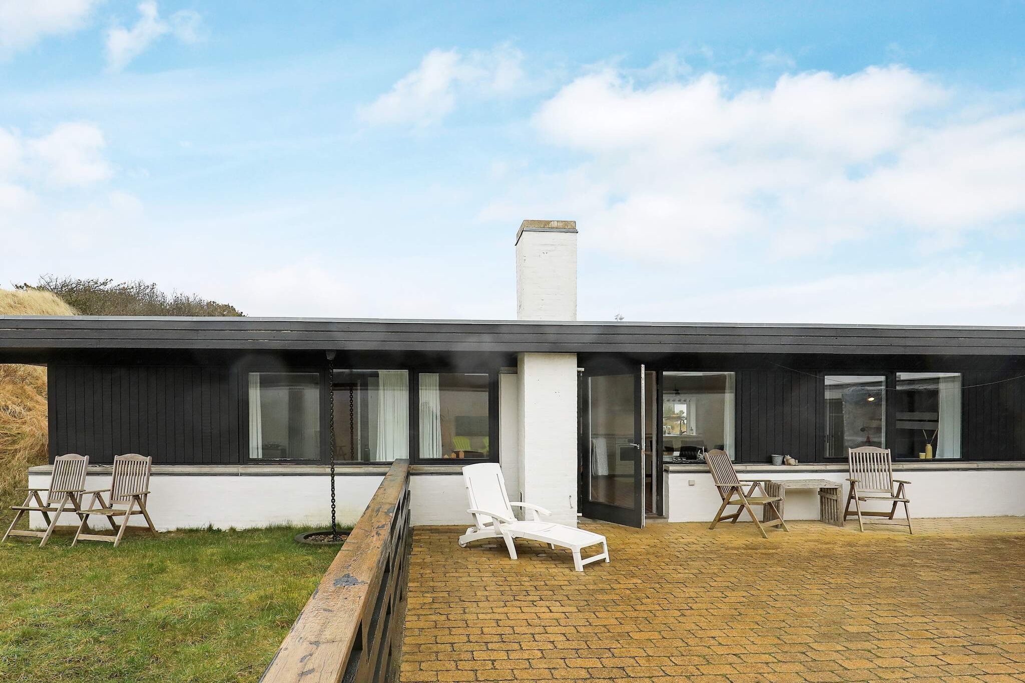 This charming holiday home in Rødhus combines a personal interior style with bright, spacious rooms and a completely private south-facing courtyard. Situated on a large shared dune plot, it offers direct access via footpaths to the wide sandy beaches and the North Sea, just 600 metres away. The setting is perfect for those seeking both tranquillity and proximity to nature. Inside, the open-plan living room and kitchen create a welcoming space for cooking, dining, and relaxation. Large windows ensure exceptional natural light, making the living area bright and inviting. The home features two bedrooms – one with a double bed, and a family room with a double bed and two bunk beds – as well as a spacious bathroom. A wood-burning stove adds both cosy ambience and efficient heating. Outdoors, guests can enjoy a small covered terrace and a 100 m² south-facing courtyard, ideal for sunny days. The shared dune plot includes a communal playground with trampolines, a ball field, swings, a sandbox, and a slide, making it a great choice for families. The property borders directly onto the beach area at Rødhus. Please note: the house is not rented out to youth groups.A refundable deposit might be charged closer to your check-in date. The security deposit ensures a smooth stay and covers any additional services or consumption charges.This deposit covers utilities consumed during your stay and any additional services that may be taken.The final amount will be adjusted based on actual meter readings, actual usage of extra services, and any remaining balance will be refunded within 21 days after checkout.This deposit simply acts as a prepayment for charges that  you would anyways pay for, ensuring a seamless stay and check-out experience.
