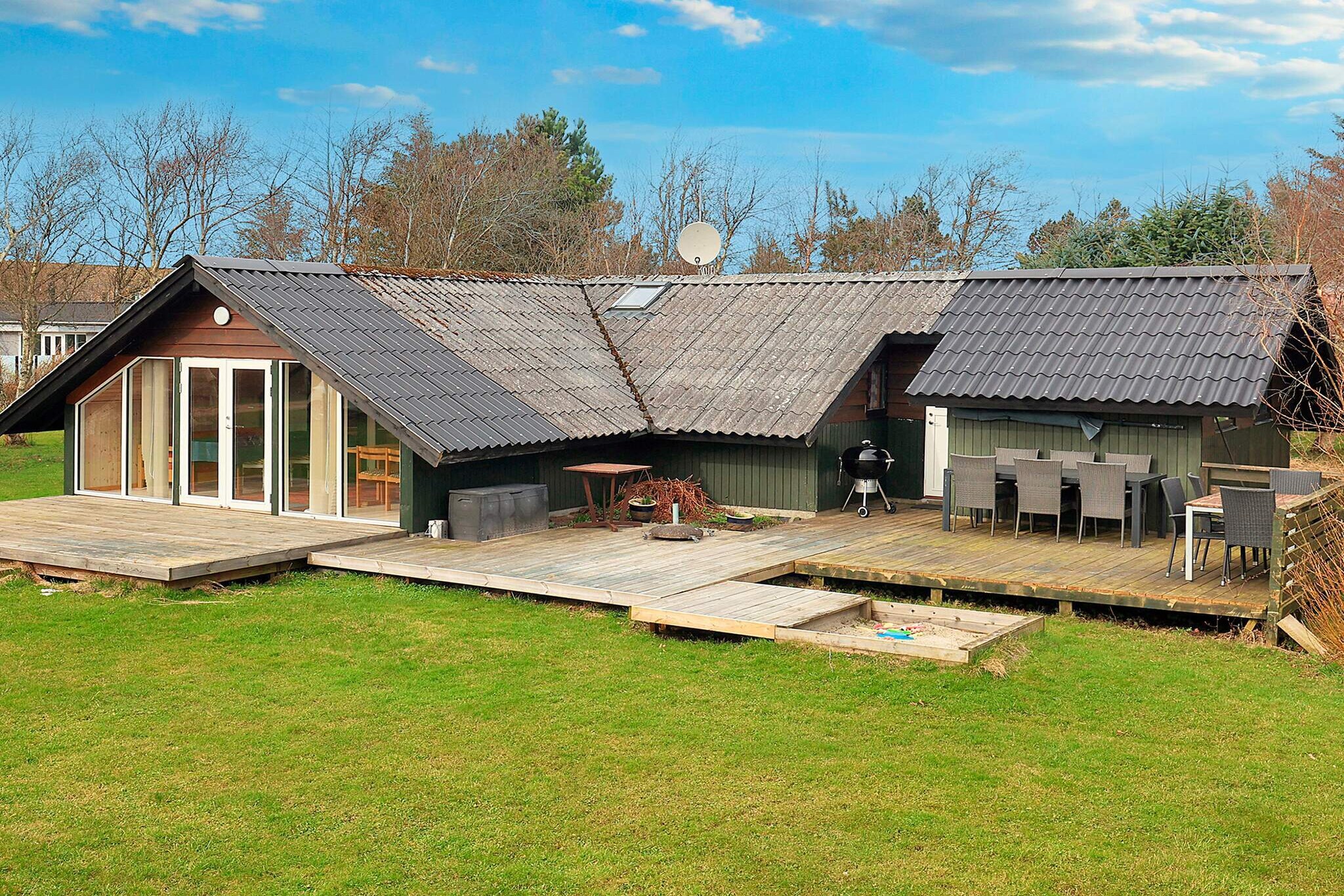 Spacious, bright and modern holiday cottage located on a large natural plot on the edge of the charming small fishing village Nr. Lyngby approx. 5 km north of Løkken. Open concept kitchen and living room, 3 bedrooms, alcove, bathroom with shower, whirlpool and underfloor heating and a guest bathroom with shower and sauna. Bright and modern furnishings in the traditional Danish cottage style. The living room is spacious and has a cosy alcove for extra beds or play corner for the children. There is a wood-burning stove for cheap heating. From the living room you have access to the large terrace that is almost like a balcony. From here you have great views of the natural area. The plot is 3096 m² and suited for outdoor activities e.g. sunbathing or ball games. There is a fire ring. Swings, sandpit, slide and playtower for the children. No letting to youth groups.A refundable deposit might be charged closer to your check-in date. The security deposit ensures a smooth stay and covers any additional services or consumption charges.This deposit covers utilities consumed during your stay and any additional services that may be taken.The final amount will be adjusted based on actual meter readings, actual usage of extra services, and any remaining balance will be refunded within 21 days after checkout.This deposit simply acts as a prepayment for charges that  you would anyways pay for, ensuring a seamless stay and check-out experience.