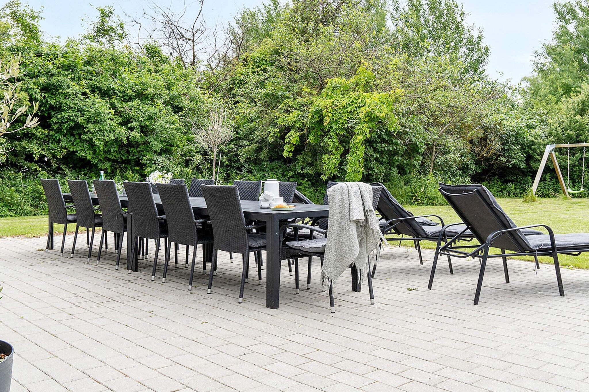 When vacationing together, it is important to have plenty of space to gather around a table and enjoy a delicious meal. There is, of course, room for this in the center of the luxury house, the large and bright kitchen/family room where you will find both a long dining table and a cozy sofa corner in front of the TV. This room also has a wood-burning stove, which can provide warmth and comfort on cool days.