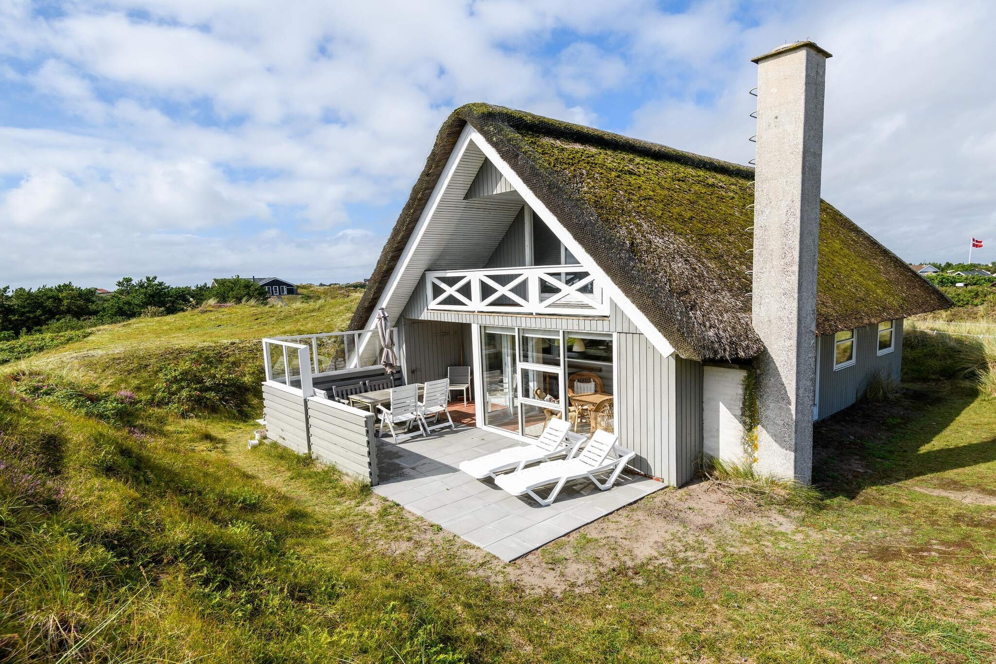 High on a dune top, sheltered by the dunes of Fanø, lies this charming cottage with a thatched roof, well equipped for four people. Two cosy bedrooms and an extra room with a reading sofa where the children can also enjoy a film. A functional kitchen opens onto the bright living room with dining area and cosy nooks by the large windows, where you can enjoy all kinds of weather indoors. Lovely underfloor heating throughout and a wood-burning stove to warm up on cool days. Beautiful, partially covered terrace where you can enjoy the sun all day long in peace and quiet. From the top of the dunes, there is a wonderful view of both the North Sea and the entire island. Very charming holiday home in a really good location. The first floor is not used. Lovely holiday home in Rindby on Fanø on the west coast! Free final cleaning!A refundable deposit might be charged closer to your check-in date. The security deposit ensures a smooth stay and covers any additional services or consumption charges.This deposit covers utilities consumed during your stay and any additional services that may be taken.The final amount will be adjusted based on actual meter readings, actual usage of extra services, and any remaining balance will be refunded within 21 days after checkout.This deposit simply acts as a prepayment for charges that you would anyways pay for, ensuring a seamless stay and check-out experience.