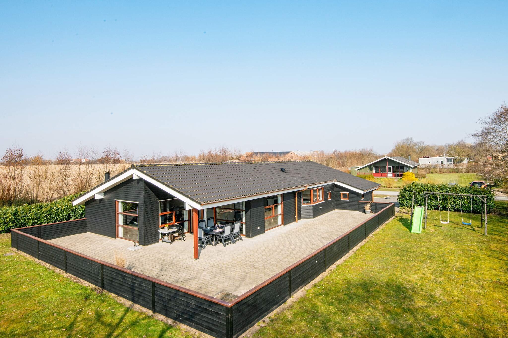 Internet Access DSL, open kitchen(cooker(electric), hood, coffee machine, microwave, dishwasher, fridge-freezer), Living/bed room(TV(cable, german television channels, danish TV channels (DR1 and TV2)), DVD player, high chair), bedroom(double bed, cot), bedroom(double bed), bedroom(2x single bed), bedroom(2x single bed), bathroom(tumble dryer, bathtub or shower, washbasin, toilet, washing machine), bathroom(bathtub or shower, washbasin, toilet), Bubble bath(indoor, heated, 2 persons), patio, heating(electric), terrace, terrace(roofed), garden, BBQ, play equipment