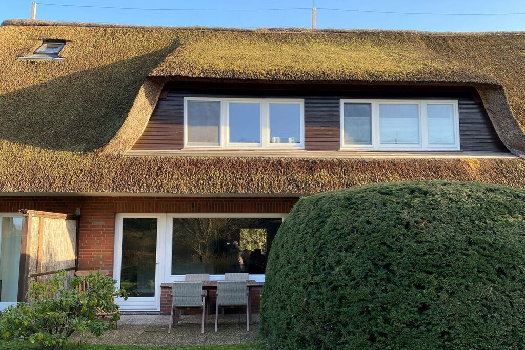 This newly renovated maisonette apartment is on the 1st floor of a small apartment house in a quiet location in the Bad district on the outskirts of St.Peter-Ording. You can feel immediately that attention was paid to detail and you get a feeling of comfort. The view from the balcony over the wide marshland invites you to linger. Here you lock out the hustle and bustle. From here you can take wonderful walks in all parts of St.Peter-Ording. Although the apartment is on the outskirts, it is still absolutely central. The idyllic little forest and the completely fenced-in dog-walking area are just a few steps away.Highlight: all usage-based energy costs, laundry package, final cleaning and WiFi included in the rental price.Activities nearby: 12 km long and 2 km wide fine sandy beach combined with the scent of pine trees and salt marshes: This is St. Peter-Ording! Experience Germany's only seaside resort with its own sulfur spring. The elongated holiday resort consists of four districts, the most beautiful of which is the old St. Peter village. Here the old brick church inspires next to many thatched Frisian houses. Each district has its own bathing beach with a restaurant on stilts. The west coast park offers variety for the whole family with a petting zoo and a unique sealarium. The little guests are also taken care of in the playhouse 5 days a week: The playhouse is a children's paradise with bouncy castles, a ball pool and lots of toys. Joint games, handicrafts or baking afternoons are offered. But clowns, children's songwriters, puppet theater, storytellers and magicians are often guests and provide lots of fun