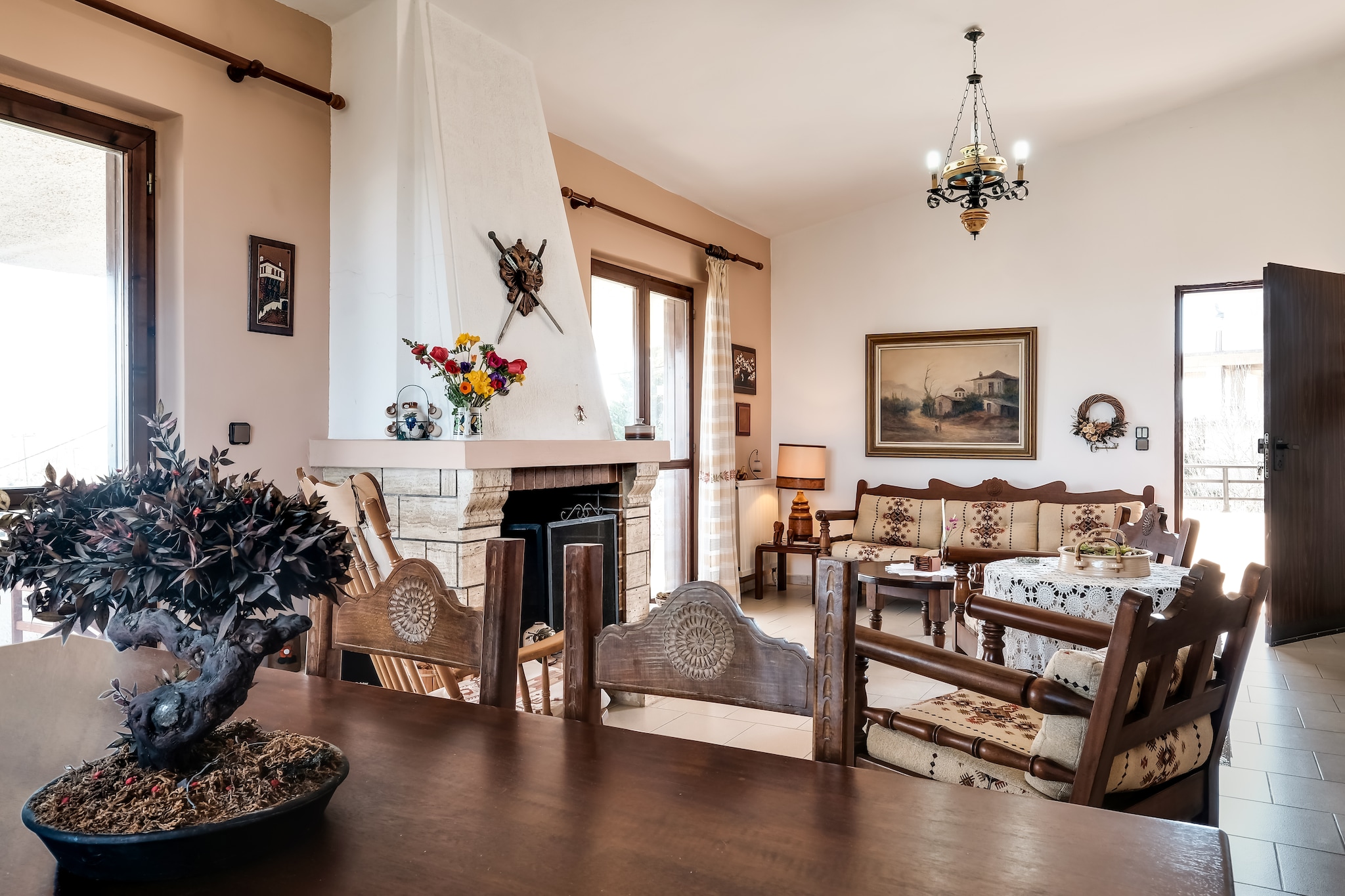 This elegant cottage in Tanagra, Central Greece is perfect for a getaway with your favorite group. A veranda in the cottage offers panoramic views of the sea while you enjoy your morning cuppa. Parking is on-site.