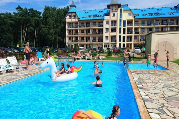 On the extensive, fenced area of ​​the holiday complex there is a summer swimming pool with heated water (separate paddling pool for children), playground, sports field, parking, barbecue area, fireplace. There is a small grocery store (open in the summer season).
