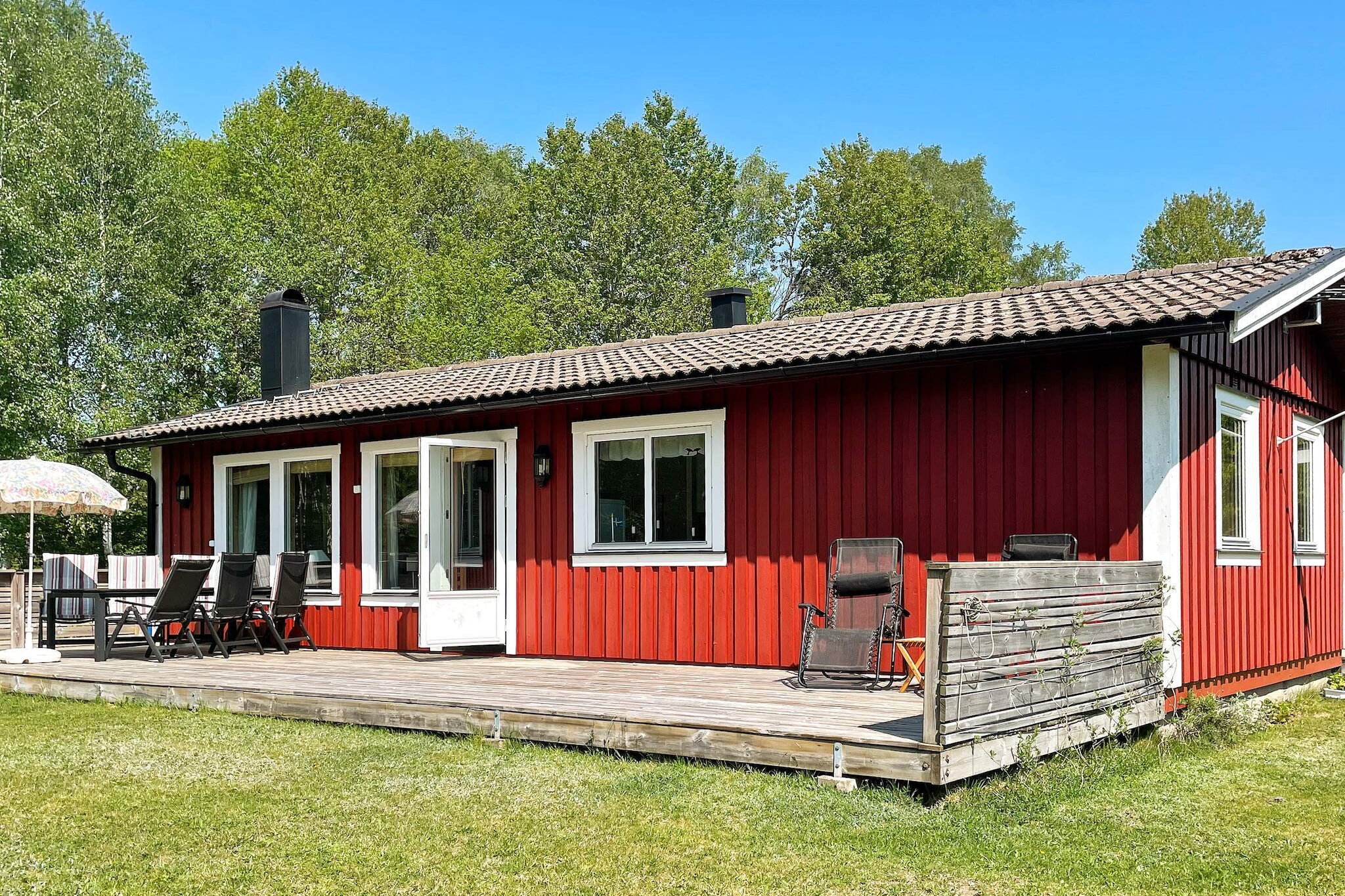 Welcome to cozy Strömma on Värmdö, here you live close to the lake with a nice view of Strömma canal. The house is located high up with a nice balcony with an unobstructed view of the water. The house has been completely renovated and has a modern kitchen with new appliances, a fully tiled bathroom with underfloor heating and a washing machine. Opposite the bathroom is the bedroom with two single beds. In the living room there is a sofa bed for two, here there is also an air heat pump for heating or cooling. The living room/kitchen has a dining table with four chairs, on the balcony there is also a dining table for four. An electric grill is available on the balcony. The plot has the forest on its side, and both moose and deer live there from time to time. If you want to pick blueberries, just go up behind the house. Strömma canal is a narrow old canal that runs between Fågebrolandet and Värmdö and here boats lock to quickly get out on Nämdöfjärden. It's nice to sit on the balcony in the evening and watch the boats pass by. If you want to take a morning or evening dip, it's fine at the owners' private jetty, but if you want a full day at the beach, Grisslinge sea bath is recommended, with several jetties, long shallows and jumping tower. There is also a nice cafe and a restaurant. It only takes 15 minutes by bus. If you fancy a bite to eat, there is a restaurant just 75 meters from the house. Summer guests and permanent residents gather here to eat well in the sun or just have a cold drink. Buses run frequently, both to Djurö, Stavsnäs and into Stockholm. You can also take the archipelago boat from Strömma into Stockholm, it will be a nice boat trip through the archipelago. The owners offer to book bed linen, towels and final cleaning, so you can just enjoy being here. Four-legged guests are welcome here and there are plenty of nice walking trails in the area. If you play golf, there are several good golf courses in the immediate area.