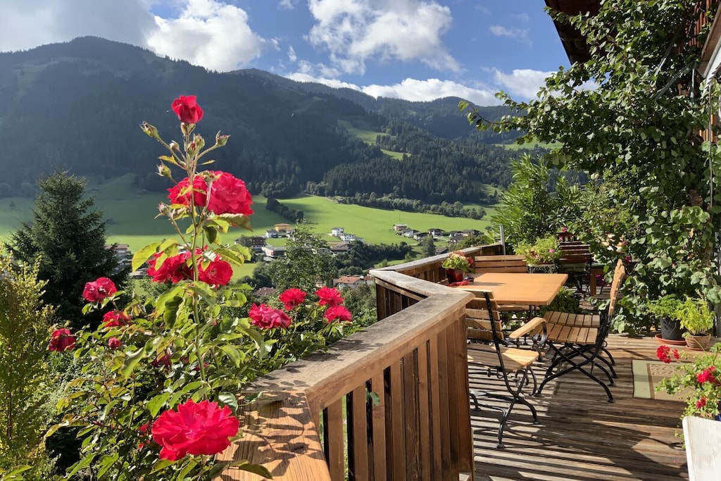 The Wildschönauer Panoramahütte is a real gem, located in the middle of the impressive mountain world of the Markbachjoch in the picturesque Tyrolean Wildschönau. Surrounded by spectacular scenery, it not only offers a unique vacation experience, but also the perfect location for a ski-in, ski-out stay, right on the ski slope, in the middle of the Ski Juwel Alpachtal Wildschönau.