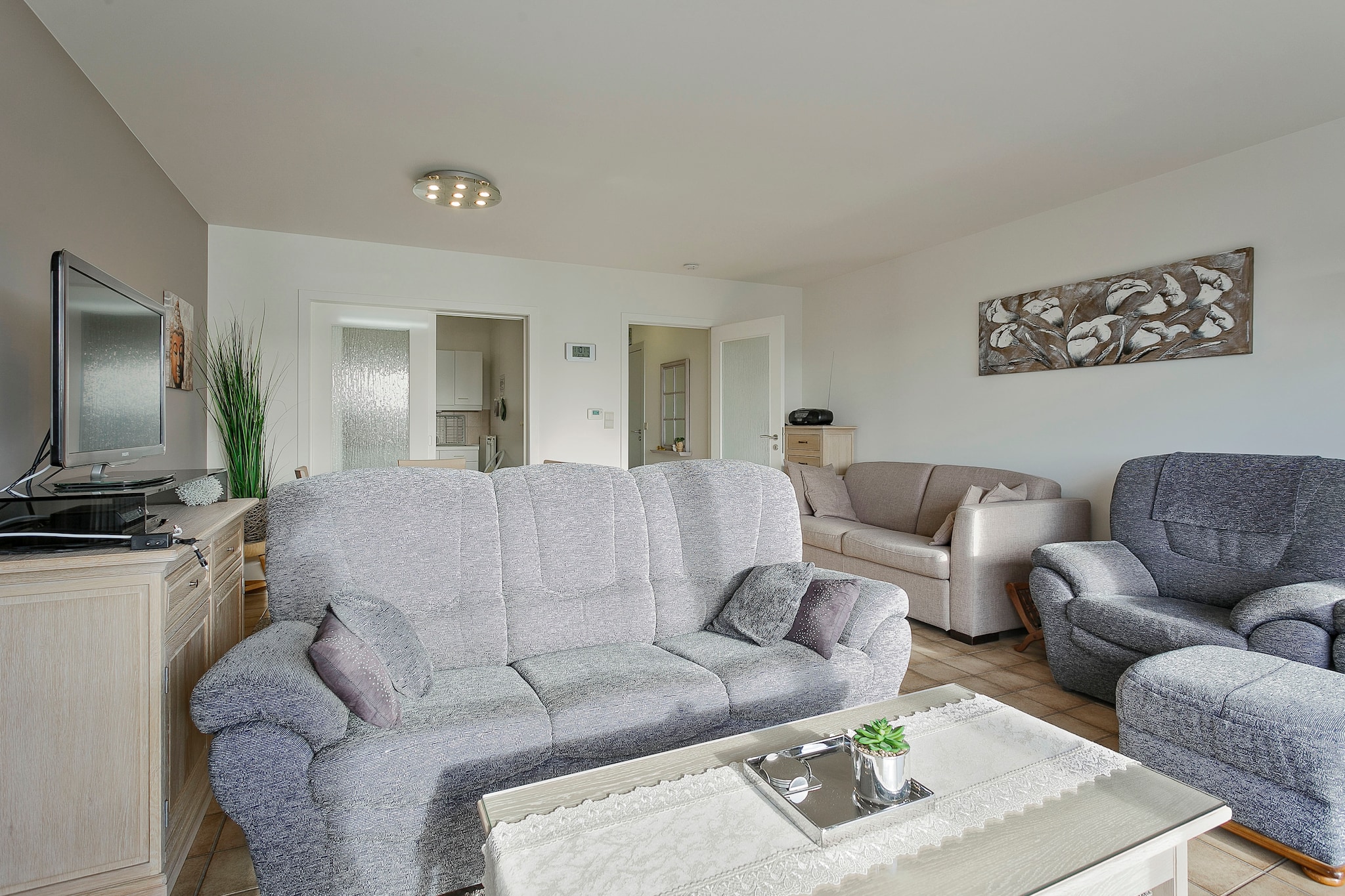 This ground-floor apartment accommodates four guests, offering a cozy and functional space. The living room features a one-seater and two-seater sofa, a smart TV with Telenet digital channels, and a dining table with four chairs. A sofa bed provides extra sleeping space for two guests. A front balcony with terrace chairs offers a relaxing outdoor area. The apartment has individual gas heating, and while smoking is prohibited, Wi-Fi is available. Pets are not allowed.