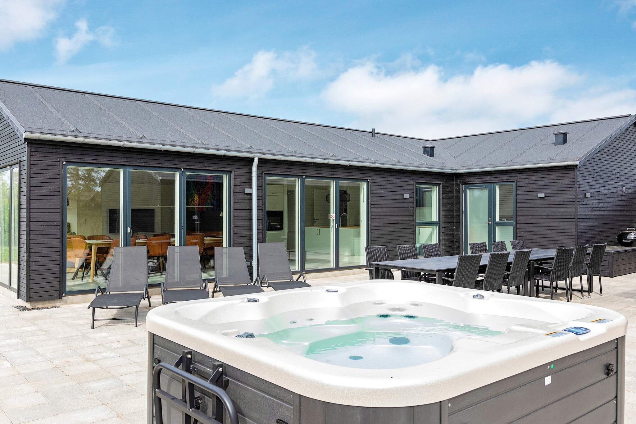 At Grønhøj Strand, you will find this tastefully decorated, high-quality vacation home with a hot tub. If you are looking for something a little out of the ordinary, this modern and well-appointed vacation home is worth a closer look. There are fun activities for the whole family, plenty of space, and high ceilings, where the whole family can enjoy themselves and spend some quality time together. The heart of the cottage is a large, open living room with good acoustics, connected to the well-equipped kitchen. There is room for everyone to get together and enjoy cooking, meals, games, a good movie, or whatever else takes your fancy. The room has several windows and skylights, allowing the fascinating North Jutland light to flood in, and on warm days you can open up onto the lovely wooden terrace. The annex is a popular hangout for the youngest members of the family – here is a bright and friendly activity room with darts, pool table, and table tennis, making the annex the perfect den for fun, games, and play. In addition to the house, there is both an outdoor shower and a hot tub on the terrace, so you can look forward to a real wellness session under the open sky. On the large terrace connecting the cottage and the annex, you also have plenty of space to relax and enjoy the summer weather as well as the peace and quiet of the large grounds.Not available for rental to youth groups.Free access to the water park in Blokhus.A refundable deposit might be charged closer to your check-in date. The security deposit ensures a smooth stay and covers any additional services or consumption charges.This deposit covers utilities consumed during your stay and any additional services that may be taken.The final amount will be adjusted based on actual meter readings, actual usage of extra services, and any remaining balance will be refunded within 21 days after checkout.This deposit simply acts as a prepayment for charges that  you would anyways pay for, ensuring a seamless stay and check-out experience.