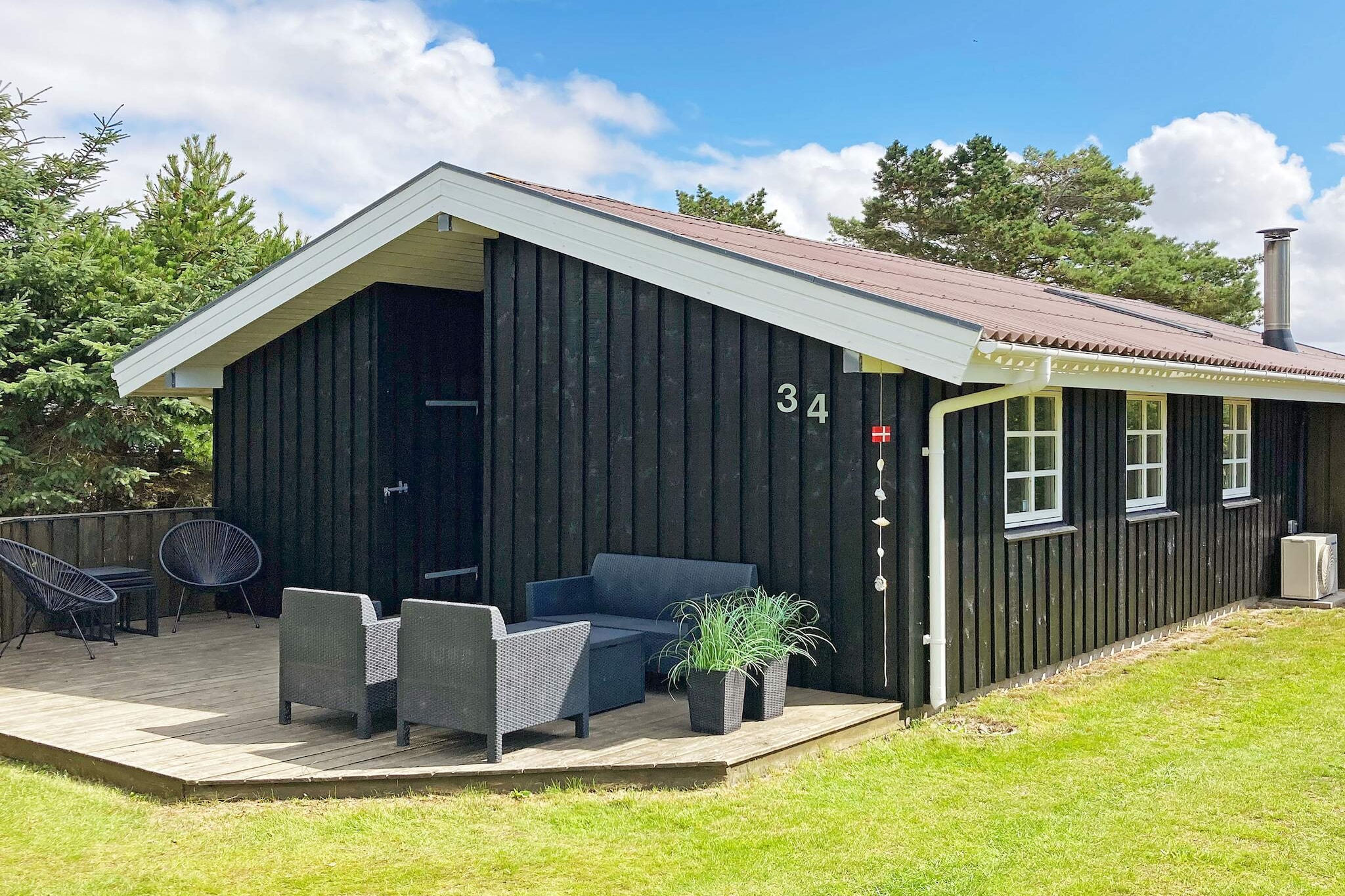 Bright and tastefully furnished holiday home for up to six guests, located just a short distance from the beach and the sea at Grønhøj Strand. The property sits on a spacious 1,450 m² natural plot, offering plenty of space for outdoor play, sports, and fun activities for the whole family. Children can enjoy the garden, explore freely, and use the outdoor play equipment provided. The house features a large terrace where guests can relax in the sun or shade. A barbecue is available for outdoor meals and cozy summer evenings. The terrace is ideal for spending much of your holiday outdoors, enjoying fresh air and the peaceful surroundings. Inside, the holiday home offers a bright and inviting living area with a wood-burning stove and a television with Chromecast, making it perfect for family gatherings or relaxing evenings. The open layout provides ample space for socializing, dining, and family life. The property includes three comfortable bedrooms and a bathroom, accommodating up to six people. The location is just 700 meters from the coast, where you can explore a variety of walking trails and scenic paths. The nearby North Sea beach offers wide sandy shores, perfect for swimming, sunbathing, and long coastal walks. This charming home combines modern comfort with a prime location close to nature and the sea, ideal for a relaxing family holiday in a scenic setting. No rentals to youth groups, please.A refundable deposit might be charged closer to your check-in date. The security deposit ensures a smooth stay and covers any additional services or consumption charges.This deposit covers utilities consumed during your stay and any additional services that may be taken.The final amount will be adjusted based on actual meter readings, actual usage of extra services, and any remaining balance will be refunded within 21 days after checkout.This deposit simply acts as a prepayment for charges that  you would anyways pay for, ensuring a seamless stay and check-out experience.