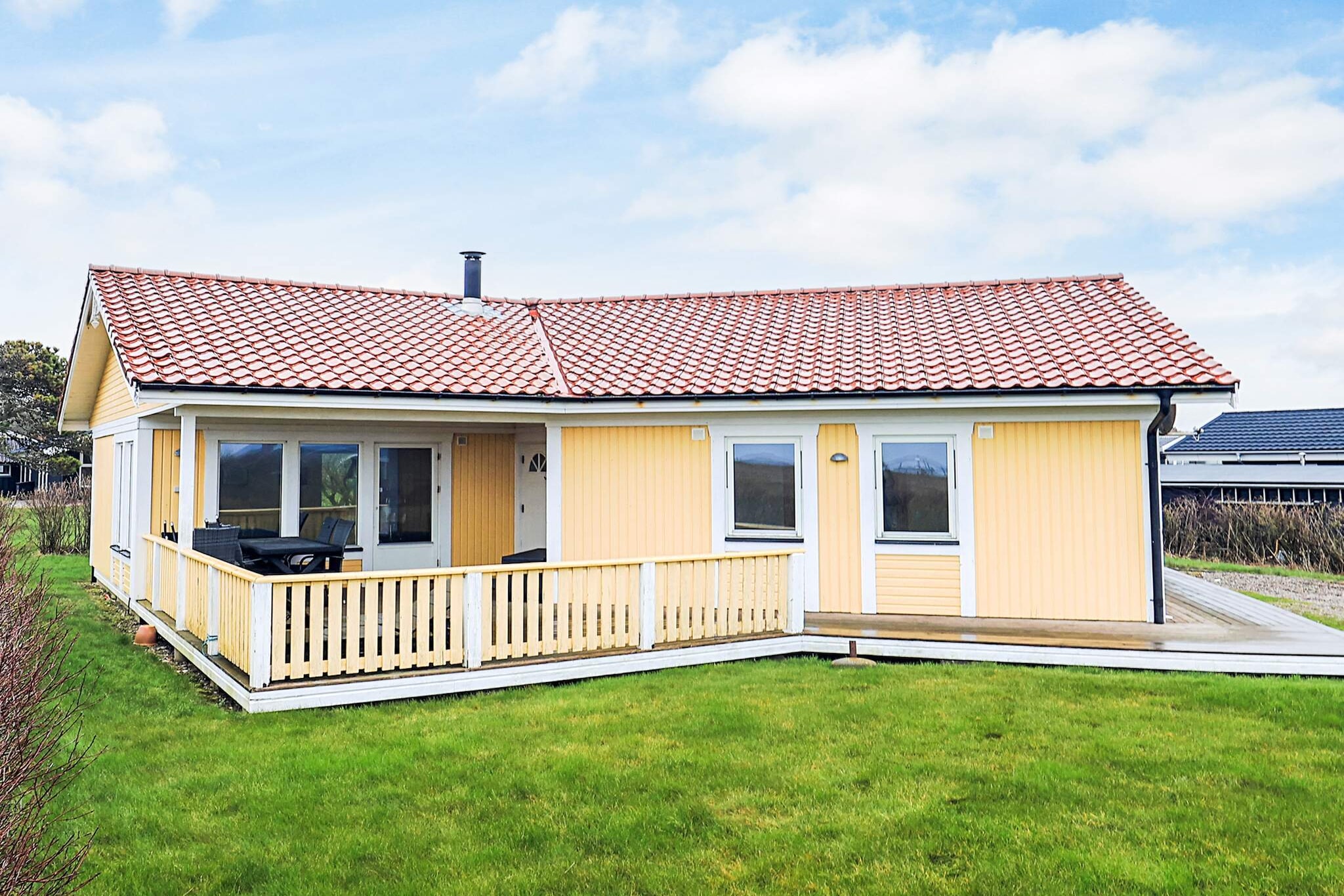 This bright and welcoming cottage offers lots of exciting details. There is an outdoor hot tub and outdoor shower, as well as a sauna in the bathroom, which you can enjoy after an active day in the area. The cottage is very well furnished with three bedrooms and modern furnishings. Bathroom with shower and underfloor heating as well as sauna and exit to the terrace with outdoor whirlpool. The well-equipped kitchen has i.a. dishwasher, microwave, ceramic hob and fridge / freezer. In connection with the kitchen there is an outdoor table top with kitchen sink. There is also a washing machine. For the cottage there are good terraces. The cottage is handicap accessible with level free access and ramp & # 160; to terrace. Short walking distance to good bathing beach.