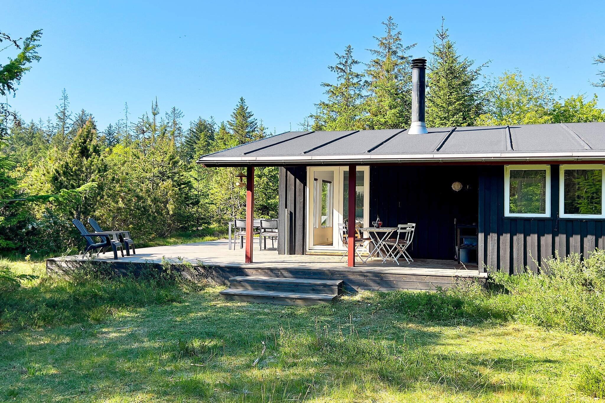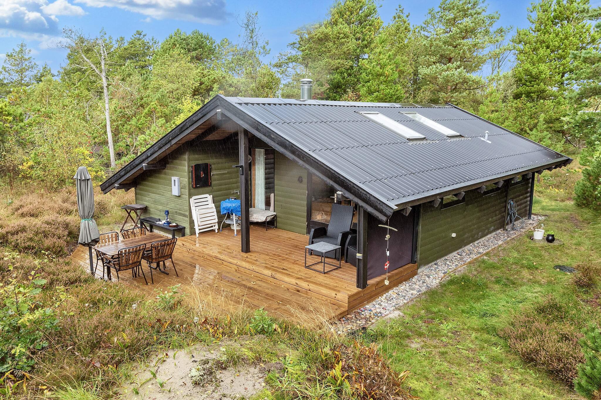 A holiday cottage located on a large natural plot with peaceful surroundings, where you can enjoy the nature and wildlife close to the sand dunes of Råbjerg Mile. The house appears bright. The terrace door and all windows are equipped with bug screens. The open kitchen is equipped with everything you need for your holiday. There is a large terrace with shelter, where you can soak up the sun completely undisturbed. There is an annex with beds for two. No letting to youth and builder groups.A refundable deposit might be charged closer to your check-in date. The security deposit ensures a smooth stay and covers any additional services or consumption charges.This deposit covers utilities consumed during your stay and any additional services that may be taken.The final amount will be adjusted based on actual meter readings, actual usage of extra services, and any remaining balance will be refunded within 21 days after checkout.This deposit simply acts as a prepayment for charges that  you would anyways pay for, ensuring a seamless stay and check-out experience.