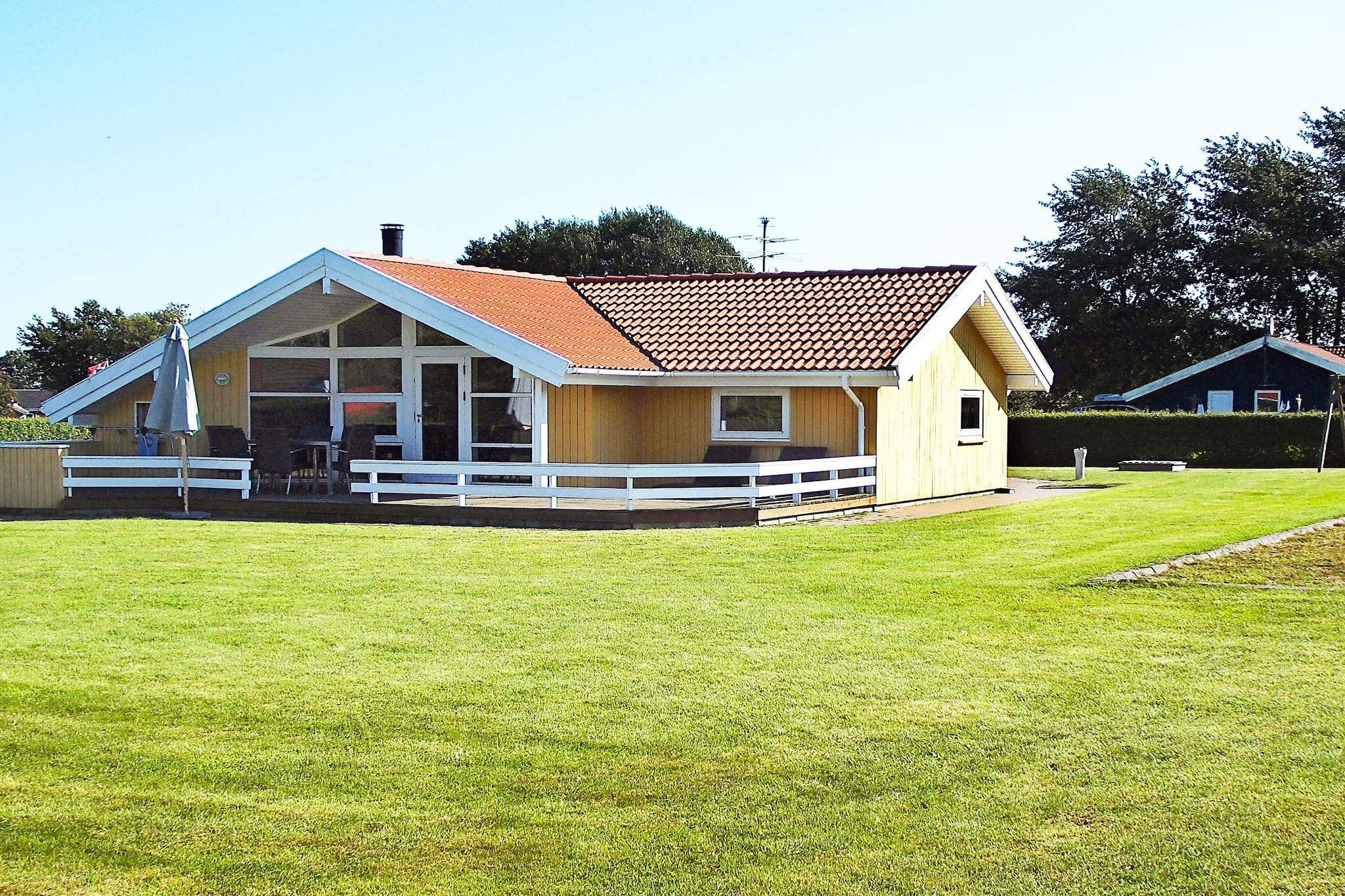 Approx. 200m from a child-friendly beach is this holiday cottage with swimming pool. The house was partly modernised in 2007. The pool area has 20 m² pool (1.35 m deep), 6-person prefilled whirlpool, sauna and underfloor heating. The layout of the house makes it suitable for 2 families sharing with e.g. 2 bathrooms of which one is connected to the pool room. 5 bedrooms, all have double beds, and 2 single beds on the mezzanine. The kitchen has dish washer, microwave oven and fridge/freezer. The large, combined dining and living room has flat screen TV with digital satellite, stereo sound system with CD player, wood-burning stove and exit to the terrace. There is an extra TV in the living room which the kids can use for playing PS4. 5 bedrooms with double beds (single beds you can part). 2 extra beds on the mezzanine. The house has a large plot for sunbathing, ball games etc. You can also just relax on the terrace. On the large terrace is a grill that you can also use for heating on cooler evenings. On the cooler days you can relax and enjoy the indoor water environment. For the children are swing, sandpit, trampoline (usage at own risk/insurance) and play items as well as cot and high chair. On the nearby camp site is a playground and a small grocer.
