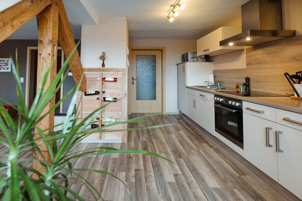 Welcome to your ground-floor escape in Güntersberge—just 500 m from the village center and right by a tranquil lakeside. This family- and pet-friendly apartment blends practical comfort with serene nature views, offering a warm base for exploring the Harz region. The open kitchen comes fully equipped for home dining, including a ceramic cooktop, fridge-freezer, microwave, oven, filter coffee machine, kettle, and toaster.