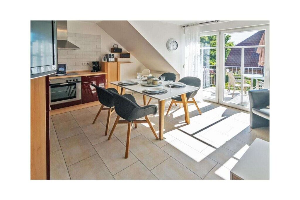 This very bright and friendly holiday apartment offers space for four people. Whether with friends or family, you will feel completely at home here. The heart of the apartment is the tastefully furnished living and dining area with integrated fitted kitchen. The modern and at the same time cozy living environment is a wonderful place to relax. The seating area is equipped with a comfortable couch and a modern TV, so you can expect cozy holiday evenings here. Adjacent to the living room is the access to your balcony. Thanks to the southwest orientation, you can enjoy the sun here in the afternoon and into the evening. The sunset can be viewed from the seating area. This is a fitting end to a wonderful day.