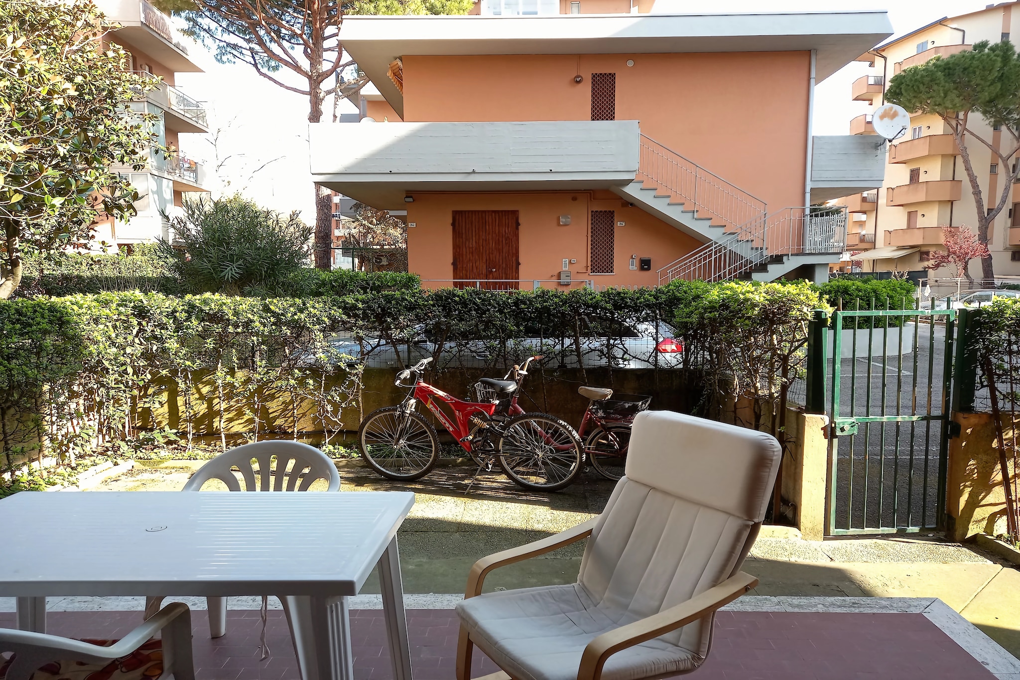 Equipped and bright apartment on the ground floor of a building 210 meters from the seafront, close to the shops and the centre. Private fenced garden, living-dining room with sofa bed, kitchenette, double bedroom, twin bedroom, bathroom with walk-in shower, outdoor space with table and chairs, where you can relax or have breakfast. The apartment is equipped with mosquito nets, television, washing machine, an assigned parking space. One small-medium sized pet is welcome.