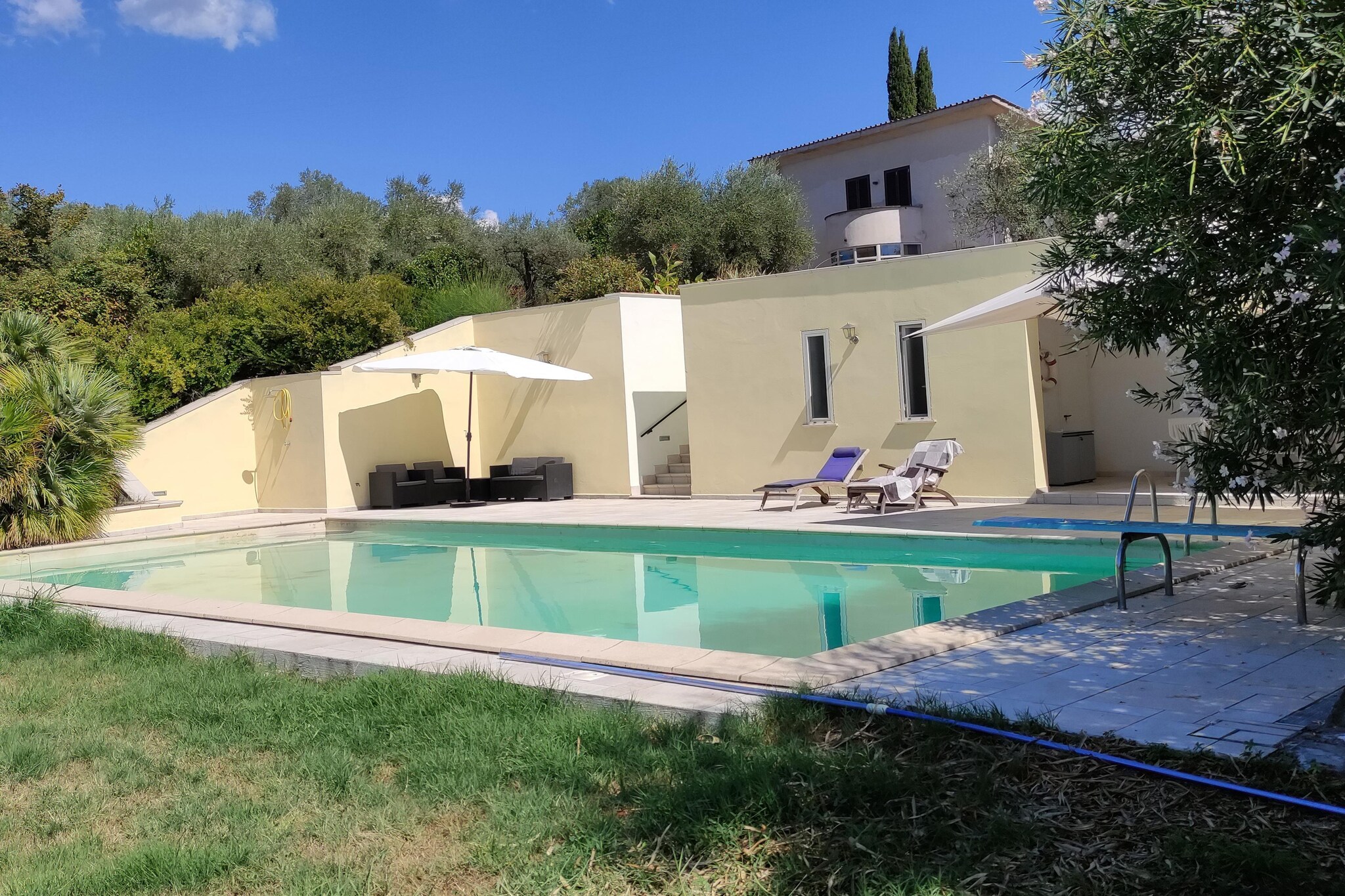 At the swimming pool in the lower area of the estate and in the midst of nature and olive trees with beautiful panoramic views.