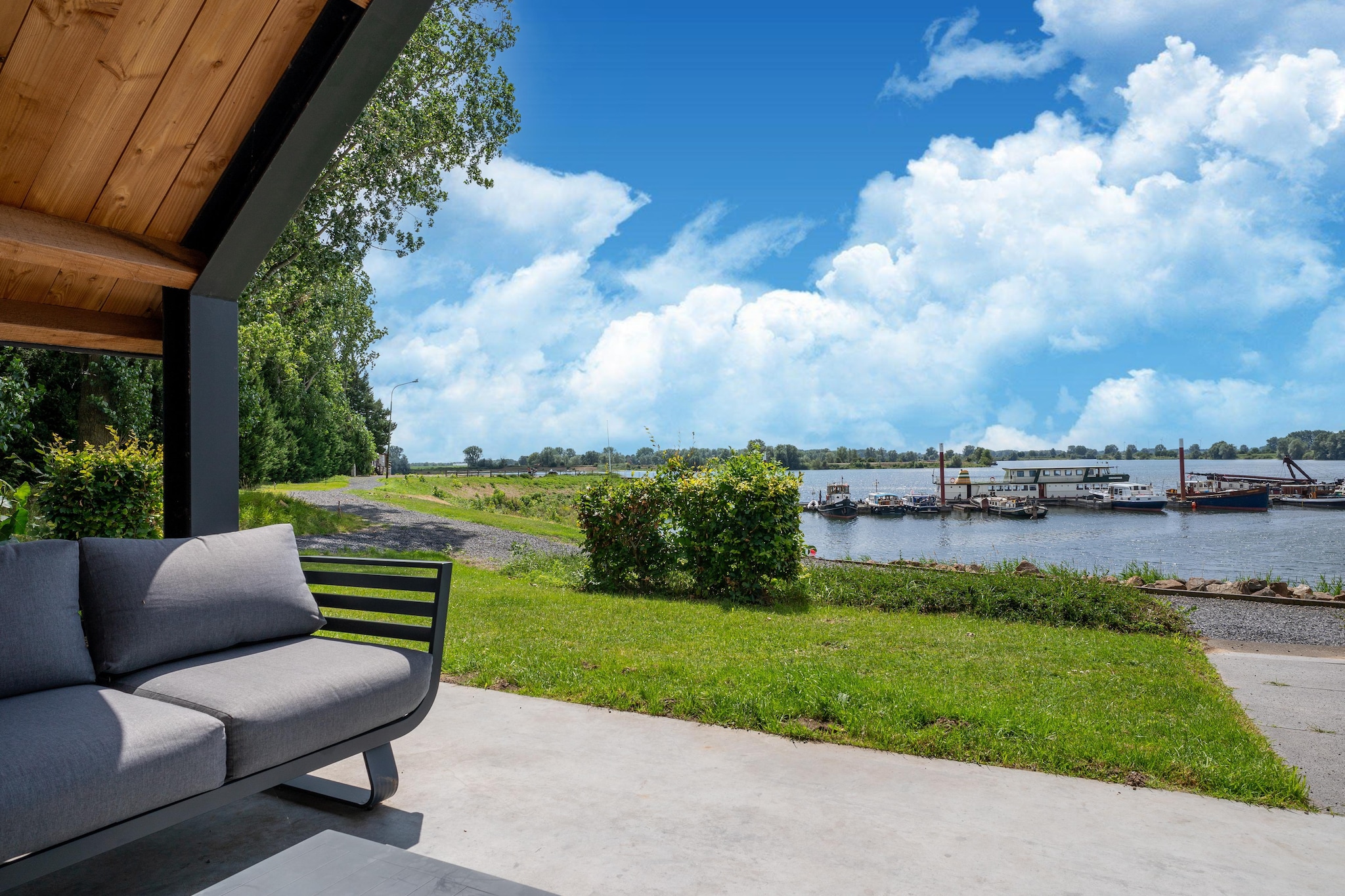 Experience peace and space in the middle of nature in these cozy holiday homes with a covered roof terrace; ideal for spending quality time with family and friends. The property is also blessed with a great location. The Zandmeren are located in the middle of the Netherlands, in one of the most beautiful, extensive areas along the Maas. The small-scale harbor where this special accommodation is located is located in a natural harbor basin. In addition, the recreation and nature reserve is built on a floodplain with clear water, which offers a varied landscape. There is always something to do here for nature lovers, hikers, cyclists and water sports enthusiasts. A water sports shop and sloop rental can be found a short distance away, as well as various catering establishments. You can go for groceries in the cozy Kerkdriel, and a visit to Den Bosch (15 km) is also possible. The large spaces offer the children the opportunity to play carefree.