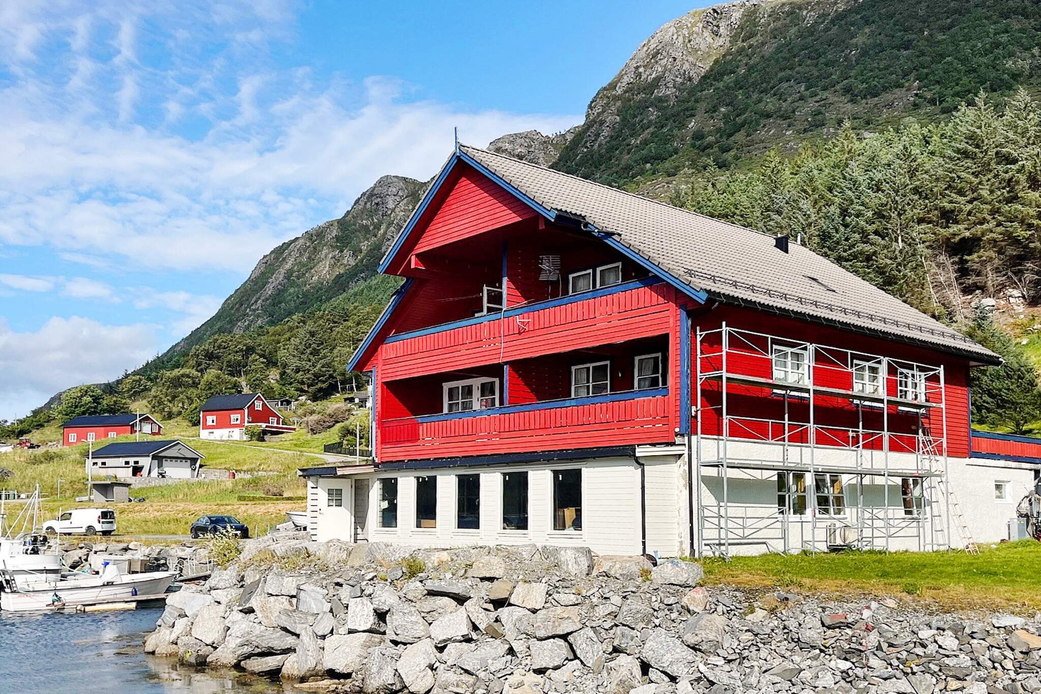 Large and spacious holiday house/fisherman’s cabin on sea plot in the center of Selje. View towards the beach Seljesanden. Final cleaning included in the price. On the lower floor of the cabin, there is a large living room with doors that can be opened to the sea. A combined living room and kitchen on the main floor, the living room on the first floor has a small kitchenette. 2 complete bathrooms and a toilet room just off the living room on the lower floor. Selje is known for idyllic and extreme nature with its contrasts; from a bustling folk life on Seljesanden in lovely, windless summer days to the brutal and stormy ocean Stadhavet during winter. 15 minutes with the monastery boat to Selje monasteries on an island with heather, marsh and some forest. The highest point on the island is Varden, 201 meters above sea level. On the island, there are ruins of a Benedictine monastery from the Middle Ages. 33 km by car to Vestkapp or Kjerringa, a mountain on the northwesternmost part of the Stad peninsula in Nordfjord, Vestland. Kjerringa towers 497 meters above the ocean and is considered the westernmost mountain plateau in Norway. Great fishing opportunities. Separate room for filleting fish with large freezer. 5 m to the boat berth. Boat for rent: 1x 21-foot Øien 620F with 60 HP Suzuki, GPS/chart plotter/sonar and 8 rod holders. NB! Several 21-foot boats can be rented on request at the same time you book the holiday home.
