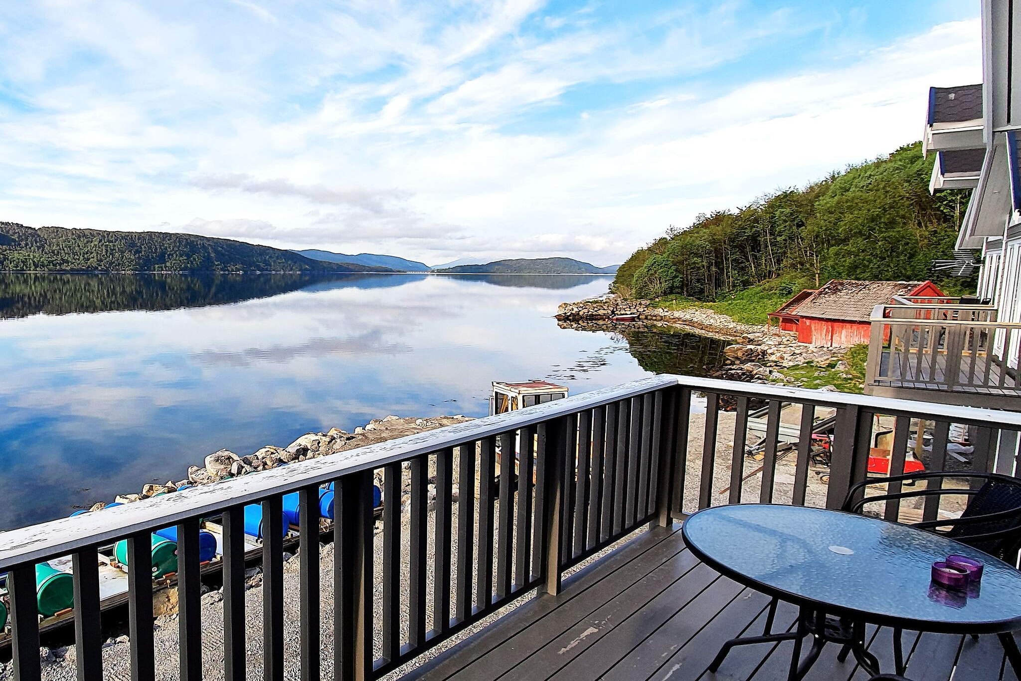 Fisherman's cabin with great panoramic views of the Grytafjord. Electricity and final cleaning included for all bookings made after 8.1.23. The fisherman's cabin is painted in light colors. Veranda facing the fjord and a large terrace on the opposite side. Large living room windows facing the fjord. Dish with Astra1 for German and European TV channels in addition to Norwegian TV channels. Wireless internet, surfing only. The downstairs living room has a kitchenette and glass doors that can be opened to the fjord. The single beds are foldable. A bedroom with a 120 cm wide single bed. The downstairs bathroom has a bath/shower. 1km to marked hiking trail, great view from the mountain above the fisherman's hut. Brattvåg with shopping center, doctor and restaurant, 10 km, another 1 km to large marina where rental boats are located, right by the ferry pier. Here, out on the coast and the nearby fjords there are great fishing spots for saithe/haddock/cod/cockle mouth etc. The fishing is much better here, which is why the boats are located here. Storage of fishing equipment and outerwear at the holiday home. Several shared fish filleting spots in a separate building with running water and light. Boats for rent with GPS / chart plotter / sonar: 1x 18 foot Øien 530F with 50 HP Mercury, 6 rod holders 1x 21 foot Øien 620F with 60 HP Mercury, 8 rod holders 1x 21 foot Karmøy 21 with 115 HP Mercury, 8 pole holders 1x 22 foot Koosi with 60 HP Mercury, 8 rod holders 1x 22 foot Finnvik, aluminum boat with 60HP Mercury, fish well and tails Several other fisherman's cabins can also rent the boats above, so please book a boat at the same time as you book the fisherman's cabin, so you can get confirmation that the boat can be reserved.