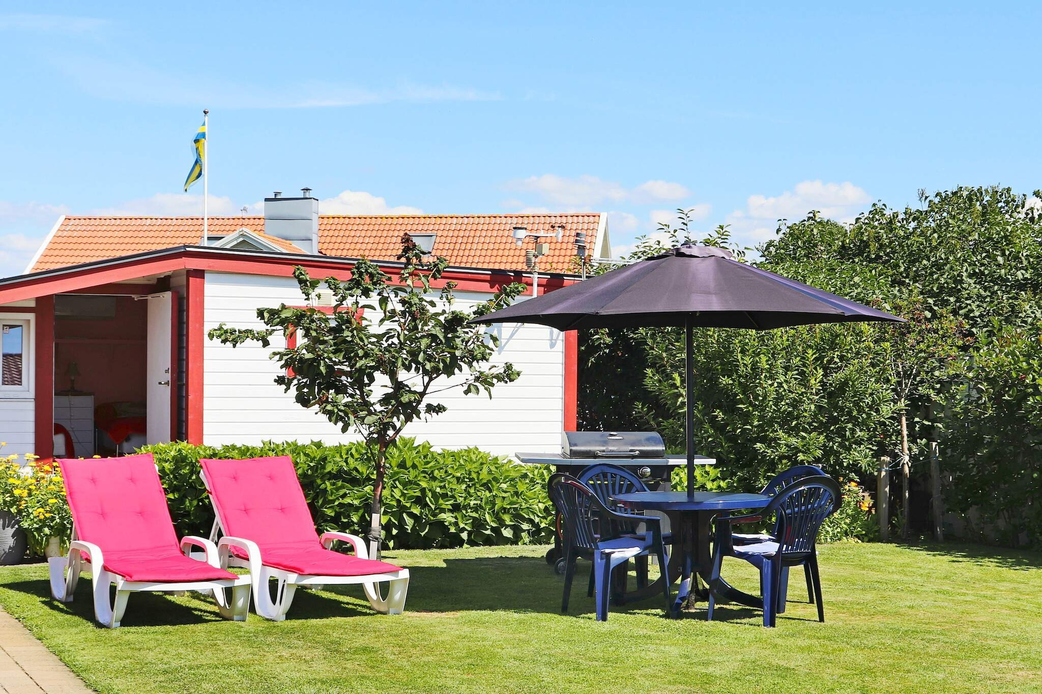 A nice guest house in the southern part of Olofsbo, within walking distance to the beach. The annex consists of two cottages. The home is perfect for two couples or a family with older children. A short walk takes you to a small picturesque marina and the popular and lovely sandy beach. There is both a summer shop and several restaurants here. The main building has a bedroom with two single beds, a living room with dining area and sofa. The kitchen is a little smaller but well equipped and the bathroom has a shower. A lovely glass-enclosed conservatory with a comfortable sofa group and TV, which can be opened up to the garden. Right next to it is the other small cabin, which has a bedroom with two single beds, a living room with a small TV and a bathroom with a shower. Both cottages have free wifi. Outside the cottages there is a lovely patio, part of the owner's beautiful garden which is at your disposal. Here there is outdoor furniture, sun loungers made of barbecue. Olofsbo is a real summer paradise, with both shops and restaurants. The long sandy beach is very popular with families with children. In the southern part there are high sand dunes and at the small marina there are good crab fishing spots. You are also close to the lovely summer towns of Falkenberg and Varberg. In Falkenberg there are many nice little cafes, restaurants and shops. For those interested in golf, there are several golf courses within easy reach. The closest is Björhults Gk. The house is not rented out to youth groups. The area also invites you to nice walks or bike rides. Morups Tånge is a nature reserve with fantastic bird life and nice walking paths. A little further north is the small community of Glommen with its cozy fishing and marina. You are also close to the lovely summer towns of Falkenberg and Varberg. In Falkenberg there are many nice little cafes, restaurants and shops.