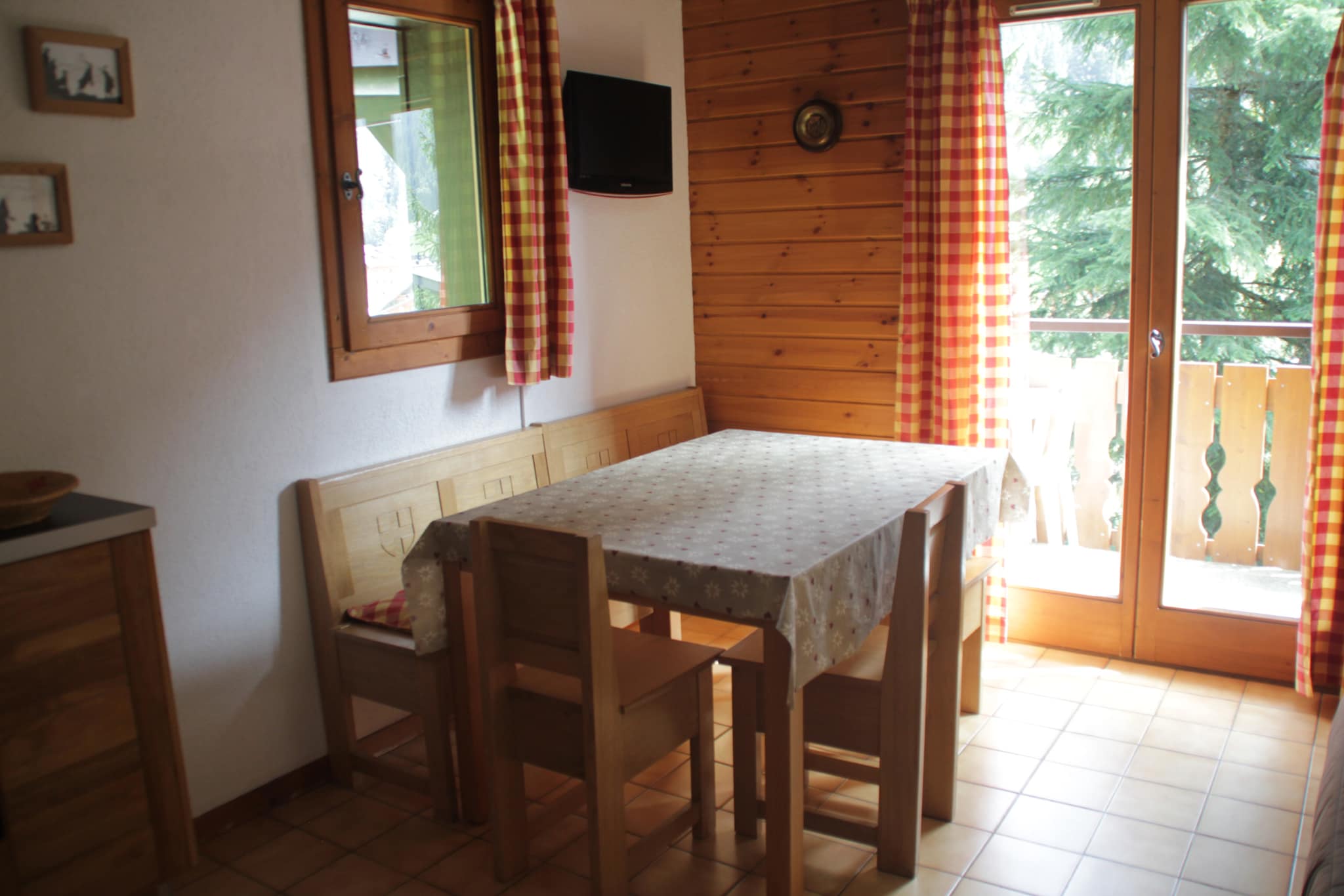 This cozy apartment is designed to accommodate up to 5 people, offering a comfortable and inviting stay. The apartment features a bedroom with a double bed 140x190 cm and a mezzanine with 4 single beds 90x190 cm. The living room, with a flat-screen TV, is bright and sunny in the summer months. A private balcony offers breathtaking views of the Abondance Valley. The apartment is on the second floor, accessible by stairs. Parking is available with one designated outdoor space. Pets are not allowed to ensure a peaceful environment for all guests.