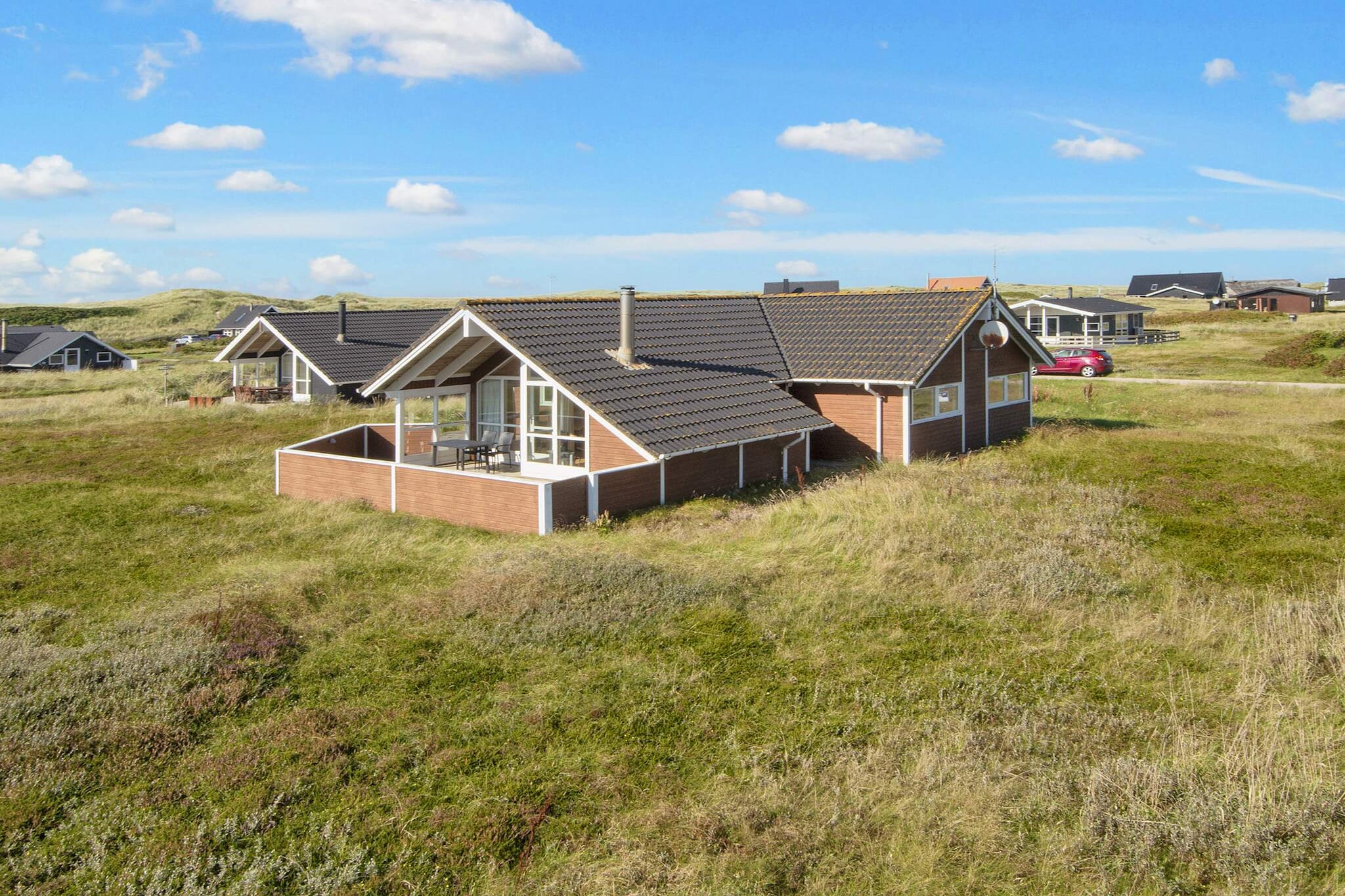 Well-located cottage in Vrist with whirlpool and sauna as well as a sloping ceiling. The house appears bright and inviting and is practically furnished with a combined living room and kitchen with access to the terrace. The living room has a TV, DVD player, stereo with radio and CD player and wood burning stove. The kitchen has i.a. electric stove, microwave and dishwasher. For the youngest guests there is a cot and high chair. The house has three bedrooms, guest bathroom, washer and dryer as well as large bathroom with whirlpool and shower. Both bathrooms have comfortable underfloor heating. From the bathroom there is direct access to the house's sauna, where you can be warmed up after a swim in the fresh waves of the North Sea or a long walk in the area's beautiful but rugged nature. There is a lovely terrace where you can enjoy dinner while the sun sets over the North Sea. The house is located on a natural plot approx. 200 m from the roaring North Sea, has its own carport as well as swings and sandpit. Not for rent to youth groups.