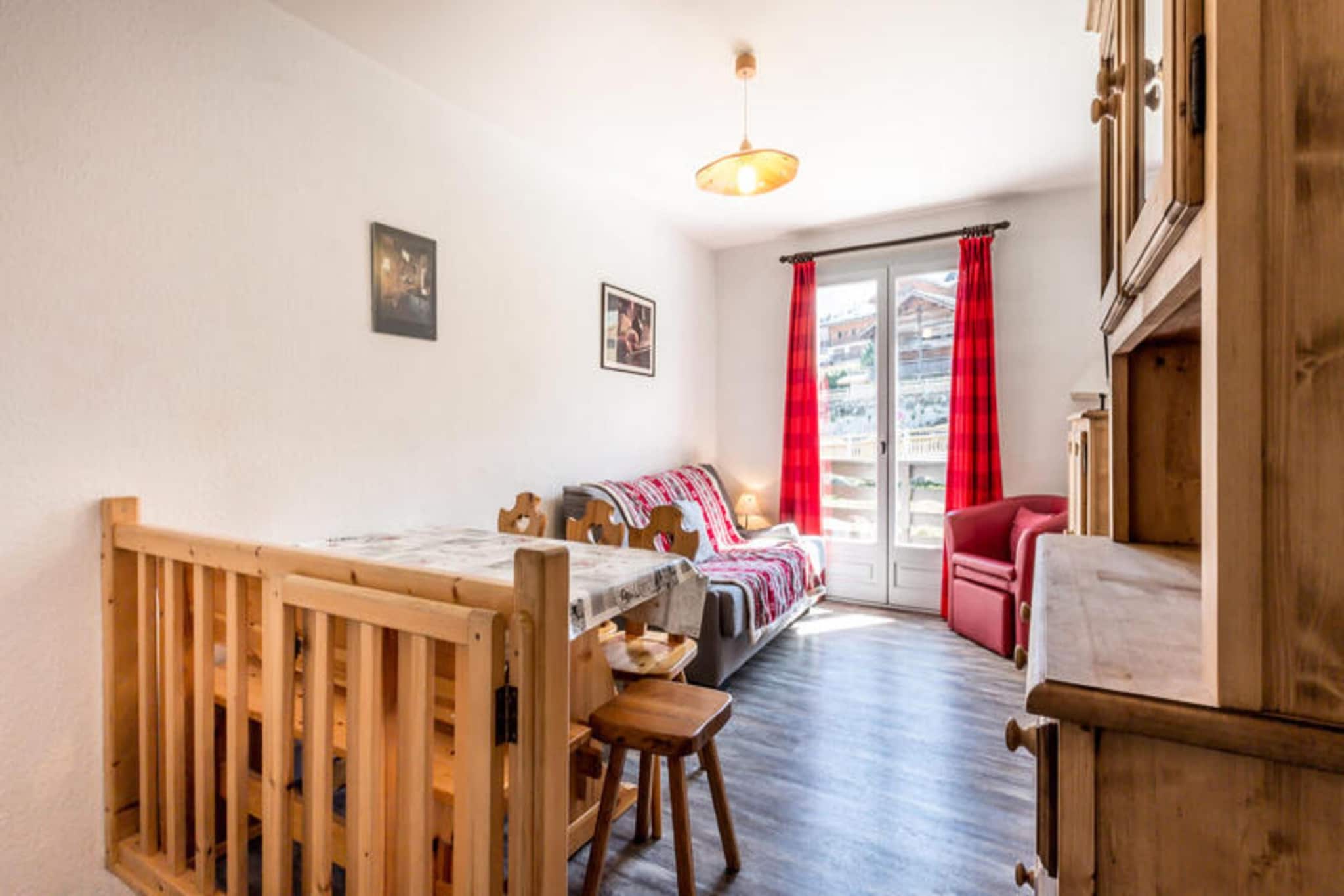 This charming 2-room apartment is located in the Upper Village of La Clusaz, just 250 meters from the shops and 75 meters from the Bossonnet Telemix, chairlift, and ski telescope, making it an ideal choice for skiers. The apartment, situated on the raised ground floor, offers a bright and cozy 43 m² space that accommodates up to 4 travelers. The kitchen is fully equipped with a refrigerator, electric hob, oven, microwave, and dishwasher. The living room features a dining area, a Rapido sofa bed, flat-screen TV, and a small south-facing balcony with lovely views of the resort and mountains.