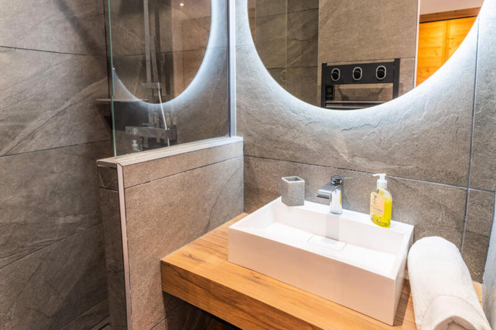 The kitchen combines modern appliances with practicality, including a Nespresso coffee machine, toaster, kettle, dishwasher, combined microwave oven, freezer, and a washing machine with dryer. Guests can gather for cozy dinners using the fondue or raclette machines provided. The dining area seats up to 8 people, creating a welcoming space for shared meals and memorable family evenings. Additional amenities include a ski box for equipment storage, underfloor heating throughout the property, and modern bathrooms with walk-in showers and heated towel rails. With thoughtful touches and a stylish alpine ambiance, this property offers guests both comfort and convenience.