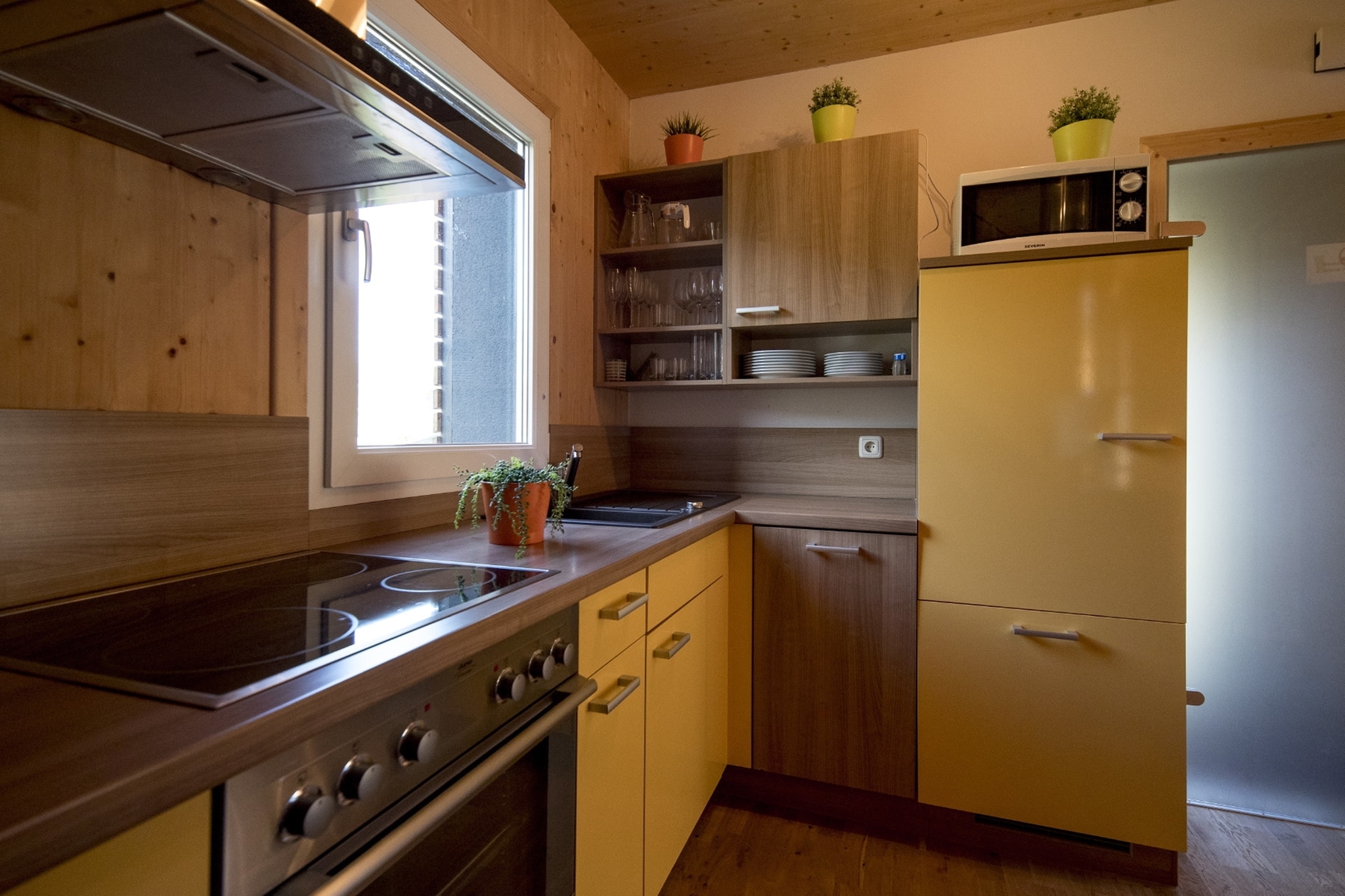 Ground floor: (hallway, open kitchen(electric kettle, toaster, coffee machine(filter), microwave, fridge-freezer, dishes and cutlery(Bowls, chopsticks, plates, cups, etc.)), Living/diningroom(TV(satellite), fireplace, radio), bathroom(bathtub with shower, washbasin, toilet), Internet access)\n\nOn the 1st floor: (bedroom(single loft bed, double bed))\n\nrelaxation area(shared with other guests)(sauna), terrace, garden furniture, parking, swimming pool(shared with other guests, roofed)