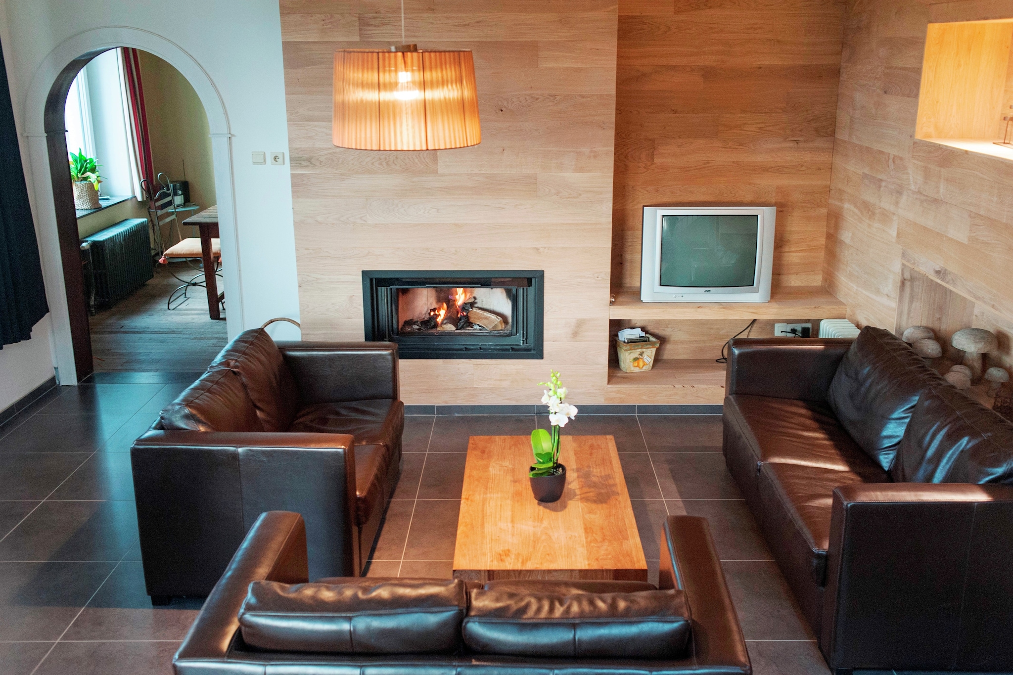 Very spacious (walled) wooden chalet for 10 people on the edge of the village of Hampteau. Large garden with a view over the Ourthe valley. Wheelchair accessible. Ideal for a 3-generation stay. Walled chalet for 10 people, located on the edge of Hampteau, with a beautiful view over the Ourthe valley. Ground floor: spacious L-shaped living room (wood stove, SMART TV, DVD) and dining area with open kitchen (4 electric hotplates, combi microwave with grill and oven function, oven, dishwasher, fridge-freezer), 1 bedroom (with high-low bed and 1 pers. bed). Bathroom usable for wheelchair users, washing machine. Hoist and shower stretcher available. Separate toilet (wheelchair toilet). Floor: 3 large bedrooms, bathroom with bath and shower. Separate toilet. Electr. heating. Very large garden (16 acres) with garden furniture, barbecue and volleyball net. Terrace on the south. Garage with table tennis. Beds: 6 x 1 pers. + 2 x 2 pers. + high chair. Stag parties and youth groups are not allowed. PETS NOT ALLOWED. FREE WIFI.