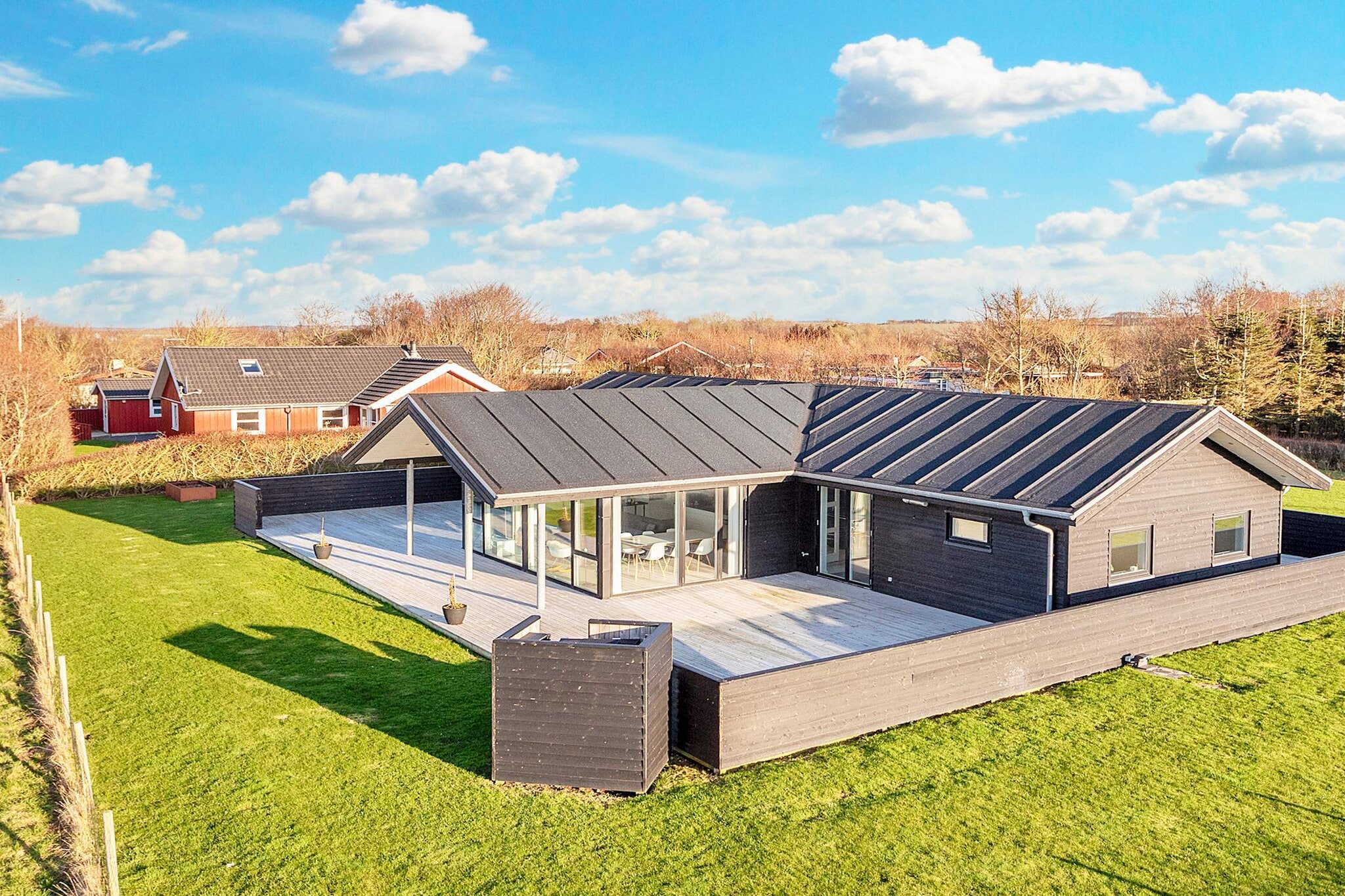 Well-located holiday home with swimming pool (the only one in the area), with activities for the whole family in an attractive area only approx. 350 meters from the Limfjord with a child-friendly beach. The summer house offers a separate swimming pool section with a 21 m² swimming pool with an integrated children's pool, a 2-person spa bath and a nice, bright bathroom with a shower, bathing environment and toilet. The house's washing machine/dryer (combi model) is also found here. In addition, there is another 1 bathroom in the house, also with a shower, bathing environment and toilet. The house is also an activity center with lots of entertainment for the whole family, including table football, billiards, table tennis, air hockey (mini table model) and electronic darts. The summer house offers plenty of opportunities to enjoy the holiday in peace and quiet, as well as opportunities for ball games and games. In addition, there are several cozy corners, which are perfect for reading a good book while the children play in the garden. The summer house appears bright and inviting, and is practically furnished with a kitchen/living room/dining room. The living room offers, among other things, on free internet, comfortable furniture, radio and flat-screen TV with both German and Danish TV channels including TV-2 etc. The kitchen offers, among other things, ceramic hob, hood, separate oven with grill, microwave, fridge/freezer, coffee machine and dishwasher. There are 5 bedrooms in the house, including 4 rooms with double beds and 1 room with bunks for two people. There is a high chair and weekend bed for the little ones. The house has several open terraces with good garden furniture and a gas grill, where you can enjoy dinner while the sun sets over the area. In addition, there is also a fire pit where the family can have fun roasting marshmallows, sausages and baking sno bread. From the house's driveway you have a sea view all the way down to the fjord. A house, suitable for several families, suitable for all seasons. Not for rent to youth groups.A refundable deposit might be charged closer to your check-in date. The security deposit ensures a smooth stay and covers any additional services or consumption charges.This deposit covers utilities consumed during your stay and any additional services that may be taken.The final amount will be adjusted based on actual meter readings, actual usage of extra services, and any remaining balance will be refunded within 21 days after checkout.This deposit simply acts as a prepayment for charges that  you would anyways pay for, ensuring a seamless stay and check-out experience.