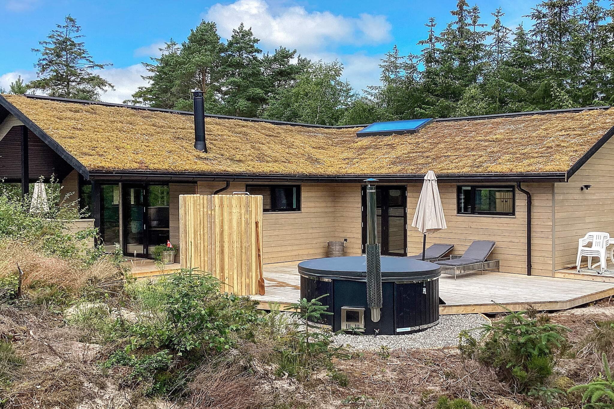 Built in 2022, this modern holiday home combines comfort, relaxation, and a wealth of amenities for an unforgettable stay. The property features both an indoor whirlpool tub and an outdoor hot tub, making it ideal for peaceful hours of wellness. It is located in a scenic and secluded holiday area near Hals, only a few hundred meters from a beautiful sandy beach, offering the perfect blend of tranquility and coastal charm. The house is thoughtfully designed with many stylish details and a spacious layout that suits family life. Large windows create a bright and welcoming atmosphere, while the open-plan kitchen, dining, and living area forms the heart of the home. From here, you have access to a large, sunny terrace complete with an outdoor kitchen, outdoor shower, and hot tub. These outdoor facilities are available from March to November and provide the perfect setting for al fresco dining and evenings under the stars. For year-round comfort, the house is heated by an energy-friendly air-to-water heat pump that provides underfloor heating throughout. A cozy wood-burning stove adds extra warmth and charm on cooler evenings. The interior also includes a generous entrance hall, four bedrooms each with a double bed, and two modern bathrooms with showers, one additionally fitted with a whirlpool tub. An activity room with billiards and table football ensures fun for guests of all ages. Practical features include a charging station for electric cars, making it convenient for eco-friendly travelers. The property is surrounded by peaceful natural scenery, creating an ideal backdrop for a relaxing holiday close to the sea. Please note: rental to youth groups is not permitted.A refundable deposit might be charged closer to your check-in date. The security deposit ensures a smooth stay and covers any additional services or consumption charges.This deposit covers utilities consumed during your stay and any additional services that may be taken.The final amount will be adjusted based on actual meter readings, actual usage of extra services, and any remaining balance will be refunded within 21 days after checkout.This deposit simply acts as a prepayment for charges that  you would anyways pay for, ensuring a seamless stay and check-out experience.