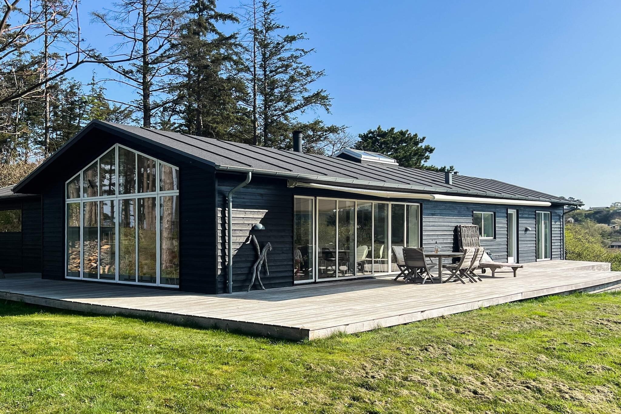 Holiday home in the 1st row and with a fantastic view of the sea at Gniben. The house has a good kitchen-dining room with a small alcove and two good bedrooms. There is a utility room and a bathroom with shower. On the covered terrace you can grill and enjoy the view, and in the large garden many good games can be played. There is a trampoline on the plot (use of this is at the tenant's own responsibility / insurance). Not for rent to youth groups.