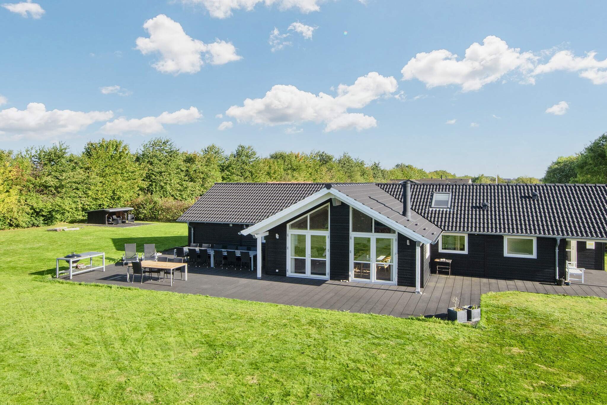 This 18-person activity house is located in beautiful Mommark. With its location on Sydals, you can experience a combination of idyllic landscapes and maritime experiences. With its peaceful atmosphere along the coastline, Mommark is the perfect destination for enjoying relaxing moments by the water. The holiday home offers a combination of comfort and entertainment. With its seven bedrooms, three bathrooms, and two cozy lofts (ideal for children), there is room for everyone. The house has been thoughtfully designed, with the inviting kitchen-dining area forming the heart of the home. Here you will find a fully equipped kitchen, a long dining table with room for everyone, and a cozy sofa area that invites shared meals and memorable moments. The activity room is connected to the kitchen-dining area and is an oasis of entertainment. With billiards, table tennis, table football, and darts, fun and entertainment are guaranteed for all holiday guests. In the activity room, you will also find the house's very own bar, where you can enjoy refreshments. The house also offers its own pool area, where you can spend many hours swimming, playing, and having fun. If you step out onto the house's large terrace, you will find a wellness area with an outdoor sauna, outdoor shower, and outdoor spa. Here you can enjoy wellness under the open sky. The house's outdoor area also offers a play paradise for the youngest guests. With a play tower, trampoline, and swing, hours of fun are guaranteed. While the youngest guests play, the rest of the guests can, weather permitting, prepare delicious meals on the house's barbecue or relax on the partially covered terrace with comfortable garden furniture. In the area, you will also find a large multi-purpose field with a pirate ship and playground for children of all ages. There are tables and benches so that adults can chat and enjoy the day while the children explore the large play area. There is a plug for electric cars at the house.