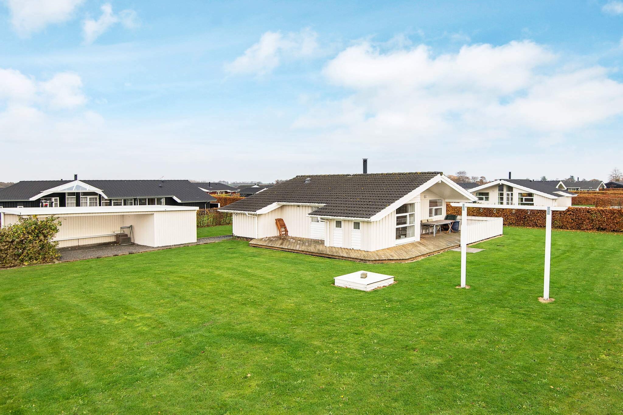 Holiday home by Flovt Strand with combined living room and kitchen with wood burning stove and alcove. From here there is access to a partially covered terrace. In the garden there is a swing and sandbox for the children. There are two double bedrooms and one twin bedroom.