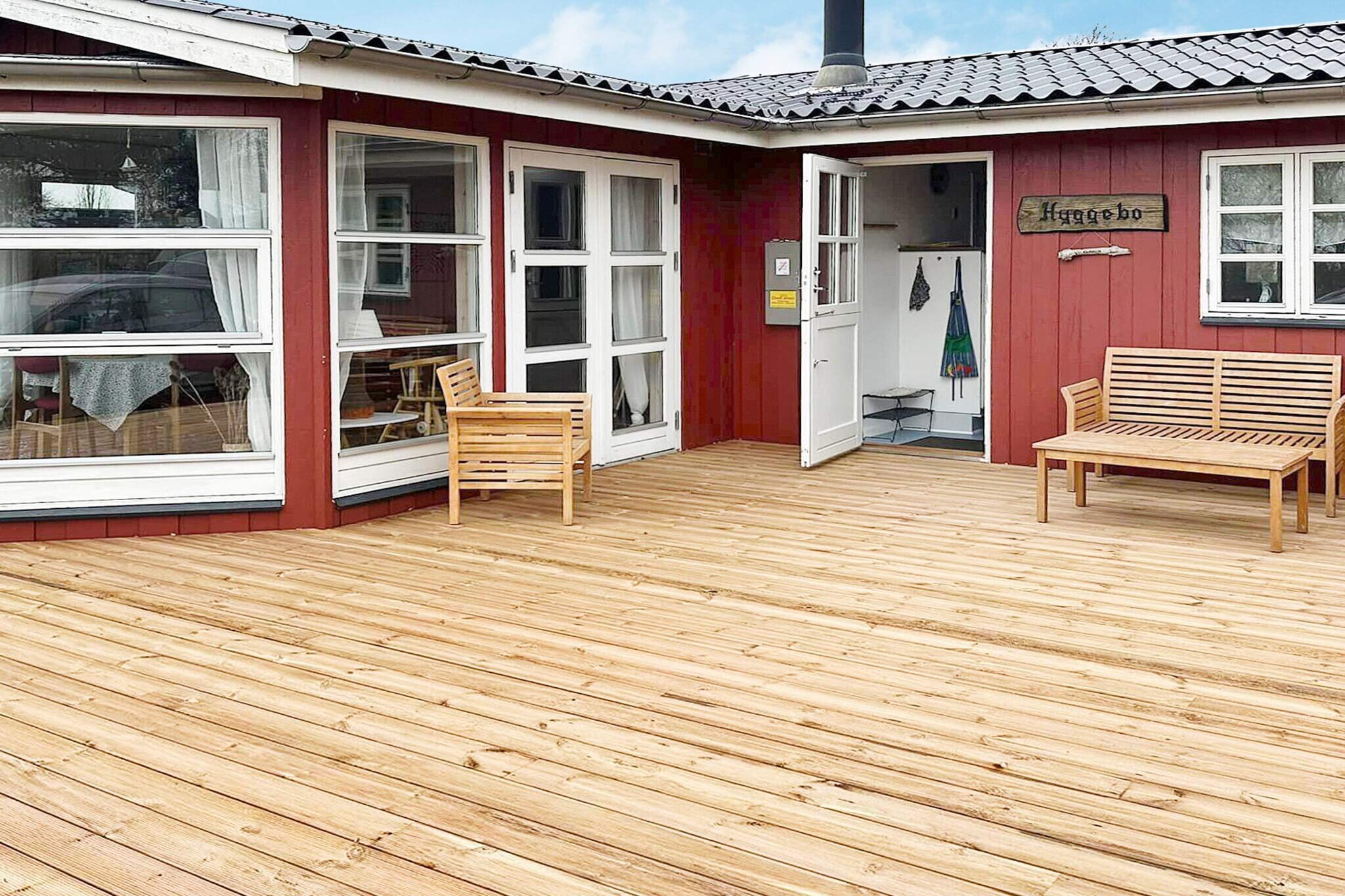 Here in this 76 m2 spacious and cozy cottage, including a large annex, you will find 4 separate bedrooms that can provide a wonderful setting for your next vacation. The heart of the house is the kitchen/living room, which, with its large windows, offers a view of the garden. From the kitchen/living room, there is direct access to the large, covered terrace.