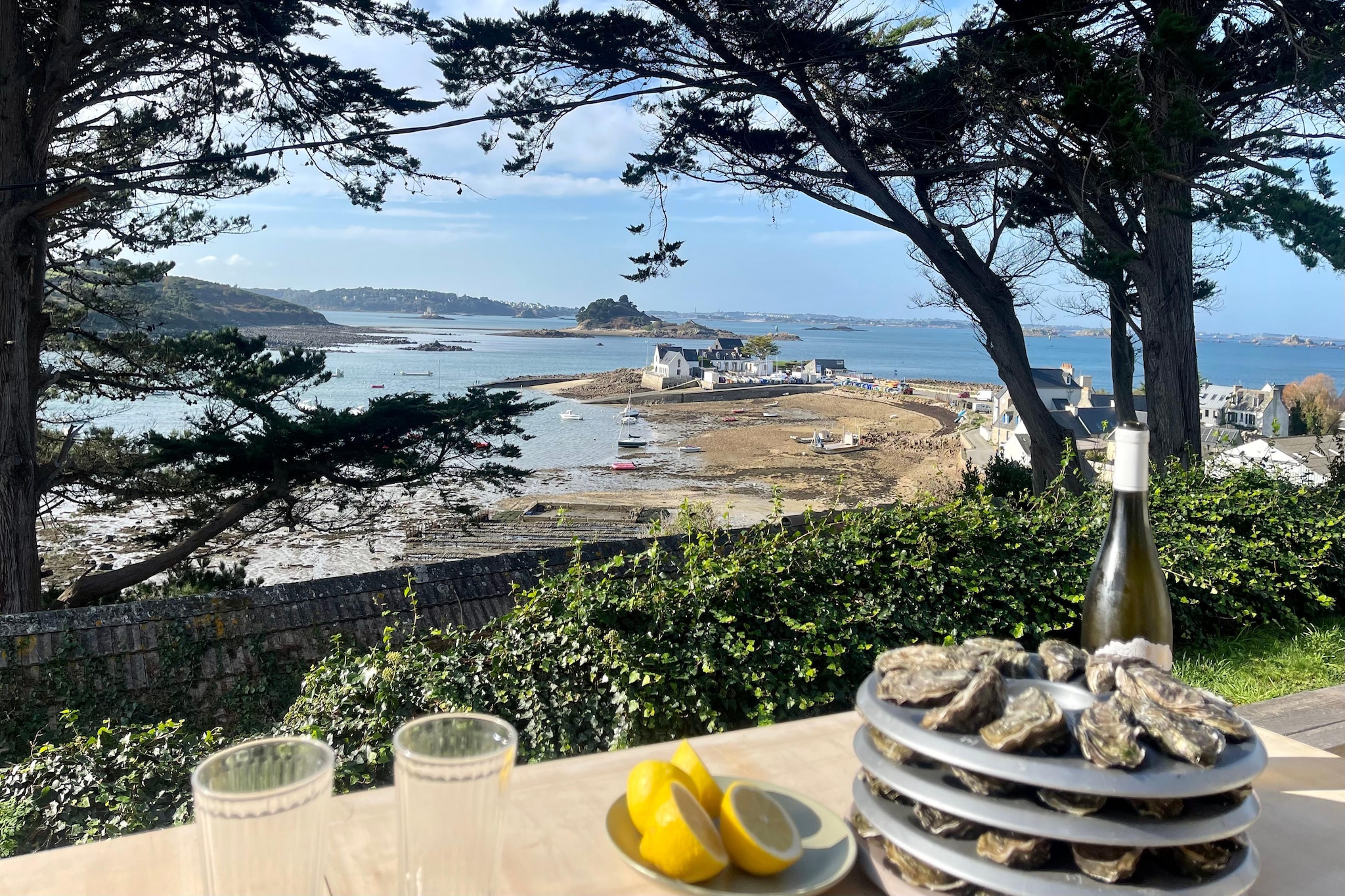 You can start the day with a refreshing swim on the small beach, get some oysters from the neighbourhood oyster farm for lunch, and in the evening admire a beautiful sunset from the terrace with a glass of Kir, the Breton aperitif. The eight beaches belonging to the municipality of Plougasnou are located at the eastern end of the bay of Morlaix and spread over 17 km of coastline. In the summer months, a tour of Morlaix Bay is offered from the small port of Le Diben. To the north, the beautiful pink granite coast beckons.