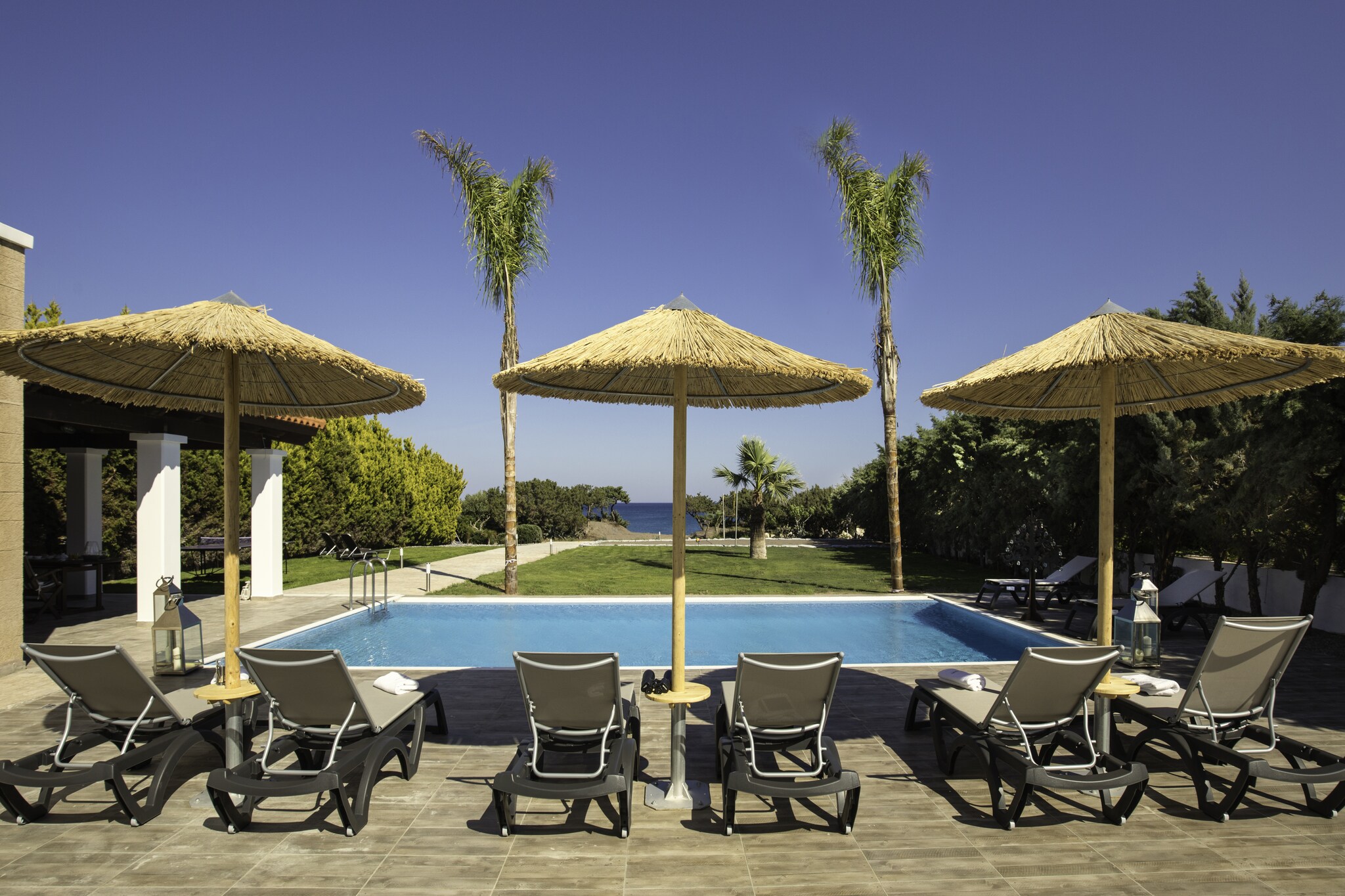 This exclusive holiday villa has direct access to the most beautiful beach in Rhodes. It is also a short drive to the unspoilt windsurfer's paradise of Prasonissi, just south of the villa. Almost private beach like in this area are no hotels just some holiday homes. The crystal-clear water brings holistic wellness and clears up the problems of everyday life. Located on the peaceful coast of Gennadi - a seaside resort with a long beach in the south of Rhodes, just after Lindos and Kiotari about 60 km from Rhodes capital. The quiet beach is mostly sandy. Gennadi offers a variety of taverns, restaurants and local attractions. Within a 20 minute drive you can visit the world famous village of Lindos or the unspoilt windsurfing paradise of Prassonisi.