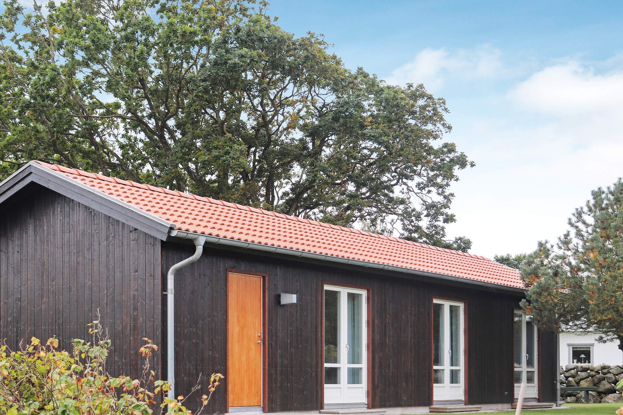 A bright and modernly decorated farmhouse on the owner's large plot with walking distance to "Läjet's" picturesque harbor and nice beach. Träslövsläge has everything you need for a wonderful holiday week. A short drive or bike ride will take you to Varberg's beautiful summer town. The annex was built in 2017 and the interior is of high quality and everything is bright and beautiful. the open kitchen is well equipped with dining area and has a smart dividing wall to the living room. It has a comfortable sofa and a modern TV. The cottage has free wifi. One bedroom has a double bed and one has a bunk bed. The bathroom is spacious with shower and washing machine. With exit from the kitchen and living room there is a terrace with comfortable outdoor furniture and barbecue. The patio opens onto a smaller green area and the cottage is framed by apple trees and lush bushes. There is plenty of space on the lawn around the cottage for your activities and a protective fence facing the street. The cottage is not rented to youth groups. In Träslövsläge with its idyllic harbor there is a restaurant, pizzeria, snack bar, mini golf and the very well-visited ice cream parlor Tre Toppar where people are happy to queue up to buy the good ice cream. There is also a nice beach. Just south of is Galtabäck's small harbor and its nice boat museum. Varberg is a real summer town with a throng of people, taverns, cafes and dance venues, everything that belongs to a summer city. The massive Varberg Fortress guards the entrance to the harbor and is visible from afar. Go on a walking tour down into the bastions and kasematts, follow along from the 1200s to our own time. If you go south, you will soon reach the nice summer town of Falkenberg with its fine selection of cafes, shops and restaurants. There is also the fantastic long sandy beach at Skrea. Another nice excursion destination is Åkulla beech forests and for those who are technically interested, it is not far to the World Heritage Grimeton. For those interested in golf, there are several nice golf courses nearby, the closest is Varbergs Gk, the western course.
