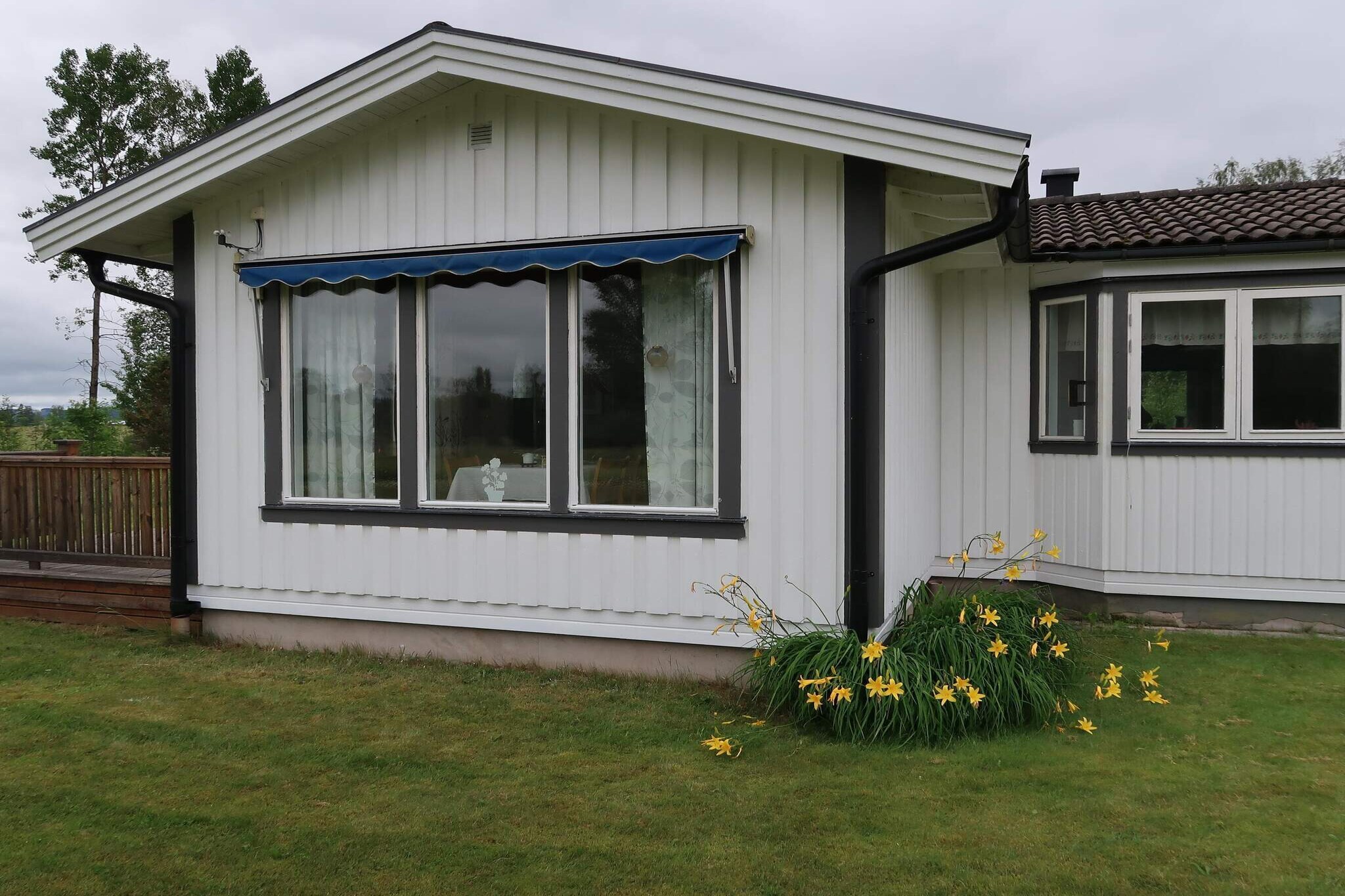 Here you live close to the sea and comfortably in a villa on two levels where the sea is visible between the greenery below from the garden or with a nice sea view up on the balcony. The villa is located in a quiet and child-friendly area within cycling distance of Örnsköldsvik. Heading down to the sea for a morning swim can beckon on a sunny summer morning. On the first floor you enter the hall where you have a bathroom with shower, a well-equipped kitchen with a dining area and a large living room with windows facing the sea side and also the exit to the terrace where you have an awning over one part and a glazed conservatory if the evening is a bit chilly. Garden furniture and barbecue for cozy evenings are available. There are three bedrooms, one of which is equipped with a sofa bed that becomes a comfortable bed at night and the other two rooms each have a single bed. On the lower level there is also access to a washing machine which is located in the laundry room behind the kitchen. Upstairs you have another large living room with access to a balcony with a lovely sea view. There is a large bedroom with a double bed and another bathroom with a shower. You can easily park your car on the driveway in front of the house. Outside there is good space for outdoor activities, the garden is surrounded by a hedge but it is not closed with any gates. There is much to discover around the High Coast. Make a detour to Skagsudde and Skeppsmalen, there are nice hiking trails and small bathing bays. In summer there is a well-visited restaurant and you can also pay a visit to the surströmming museum.